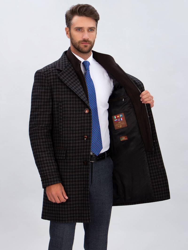 2061У M BLACK GREY CHEK LUX/ Пальто мужское