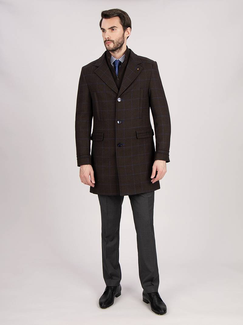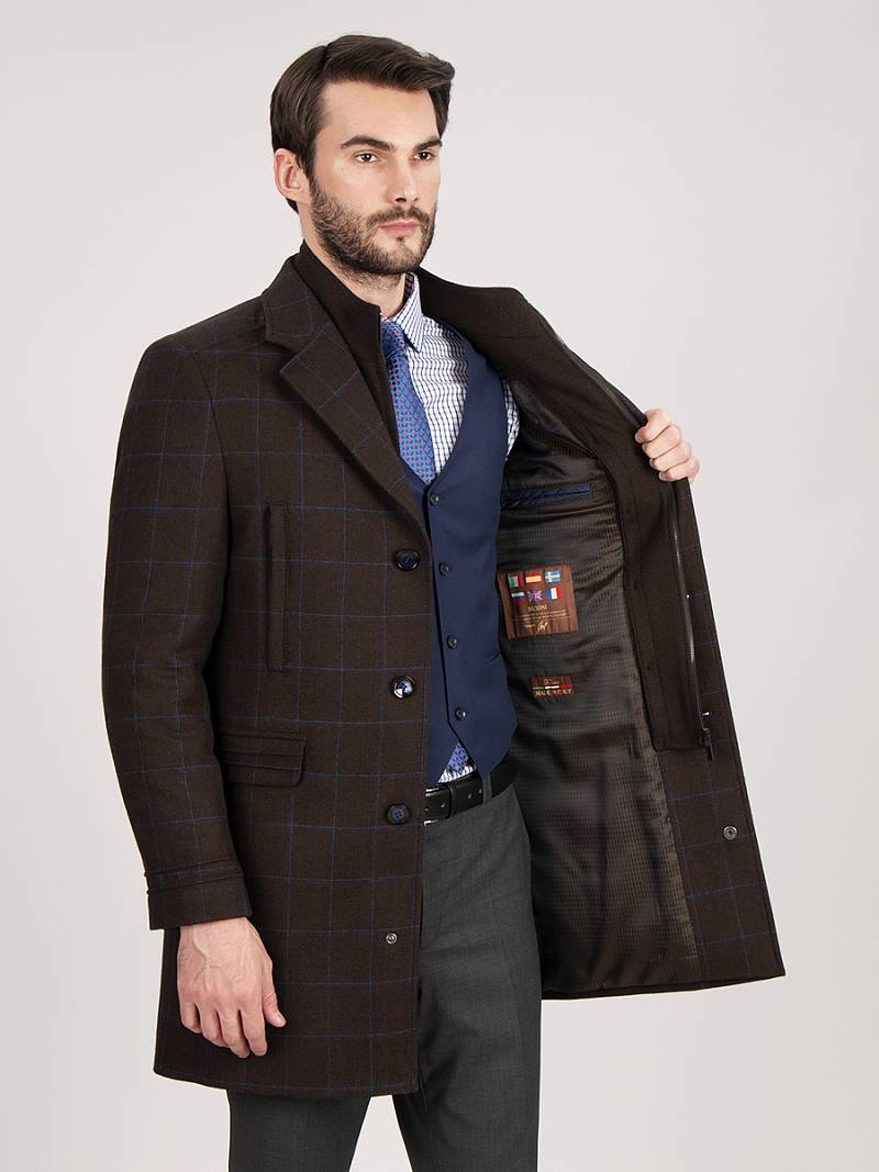 2061У M DK BROWN CHEK LUX/ Пальто мужское
