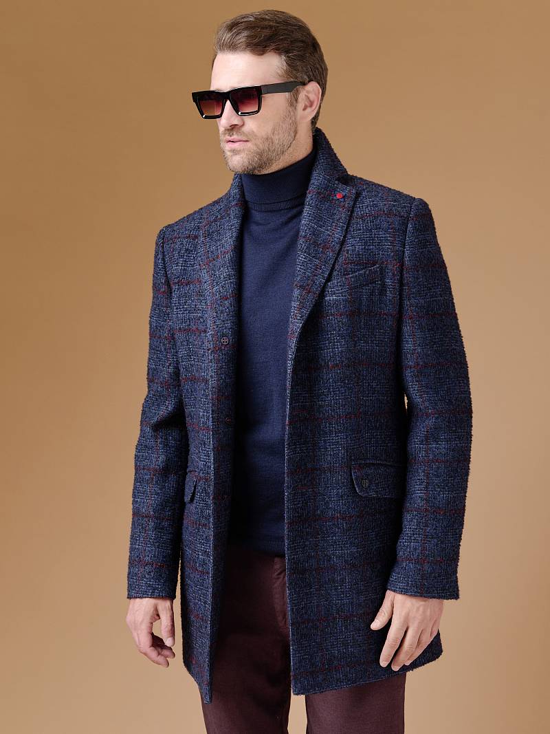 2062У M POMILIA DK NAVY CHEK/ Пальто мужское
