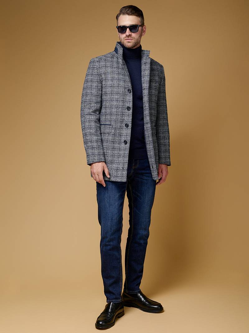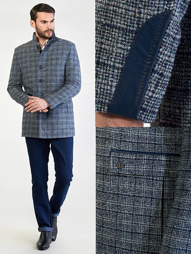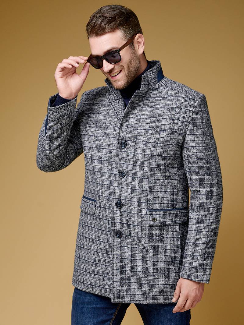 Пальто мужское утепленное, с застежкой на пуговицы, воротник-стойка. На полочках - нагрудный карман с листочкой и два нижних кармана с клапанами. Отделка - деталь на воротнике и детали в шлице рукавов. Длина изделия по спинке для роста 176 - 82см. Ткань верха: 100% шерсть. Подкладка: 50% вискоза, 50% полиэстер. Утеплитель: Термоплюс 100гр