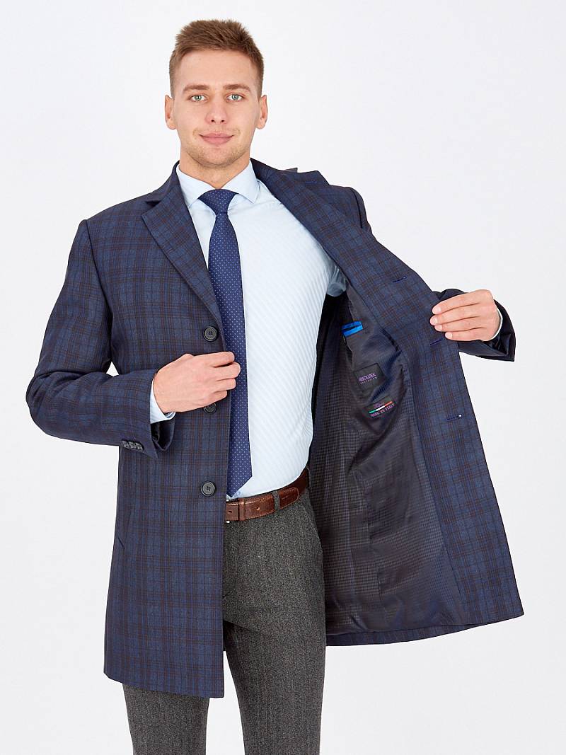 Пальто мужское утепленное с застежкой на 3 пуговицы, воротник английский с лацканами, нагрудный карман и два нижних наклонных боковых кармана с листочками. Длина изделия по спинке для роста 176 - 90см. Ткань верха: 30% шерсть, 50% вискоза, 20% полиэстер. Подкладка: 50%вискоза 50%полиэстер. Утеплитель: термоплюс 100гр