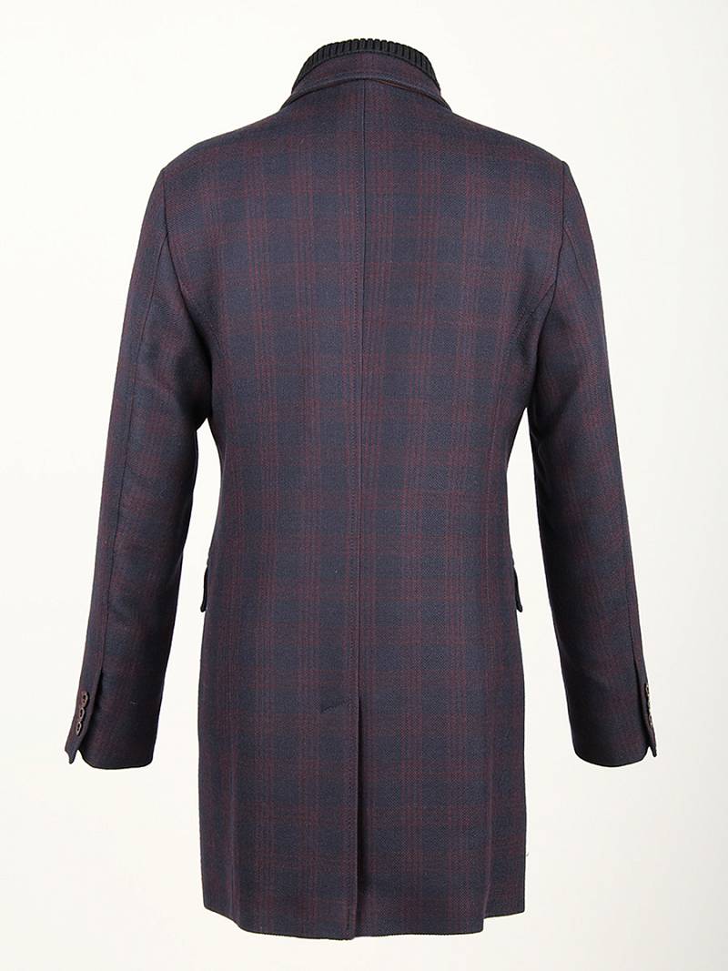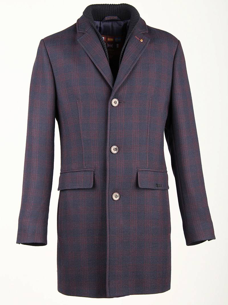 Пальто мужское, центральная застёжка на 3 пуговицы, Воротник английский +воротник трикотажный, боковые карманы с клапаном, рукав втачной, одна шлица. BAZIONI