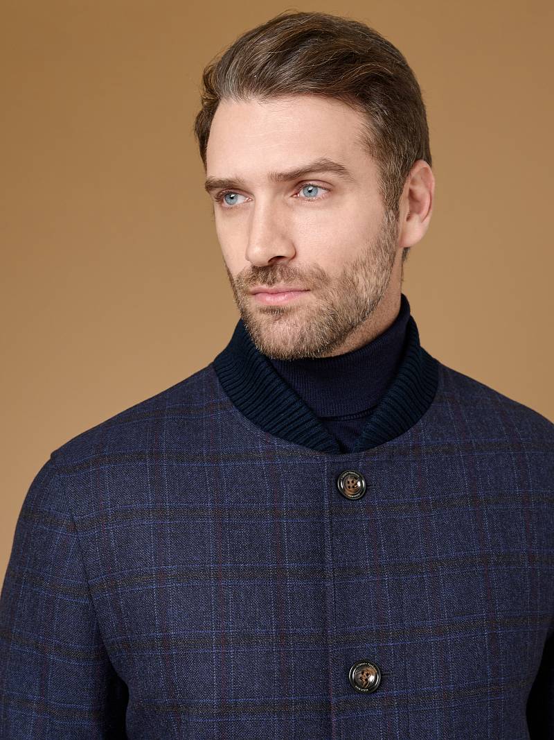 Пальто мужское (укороченное), утепленное с трикотажным воротником. Центральная застежка на пуговицы. Боковые наклонные карманы листочки, притачной манжет на верхней детали рукава с пуговицей,