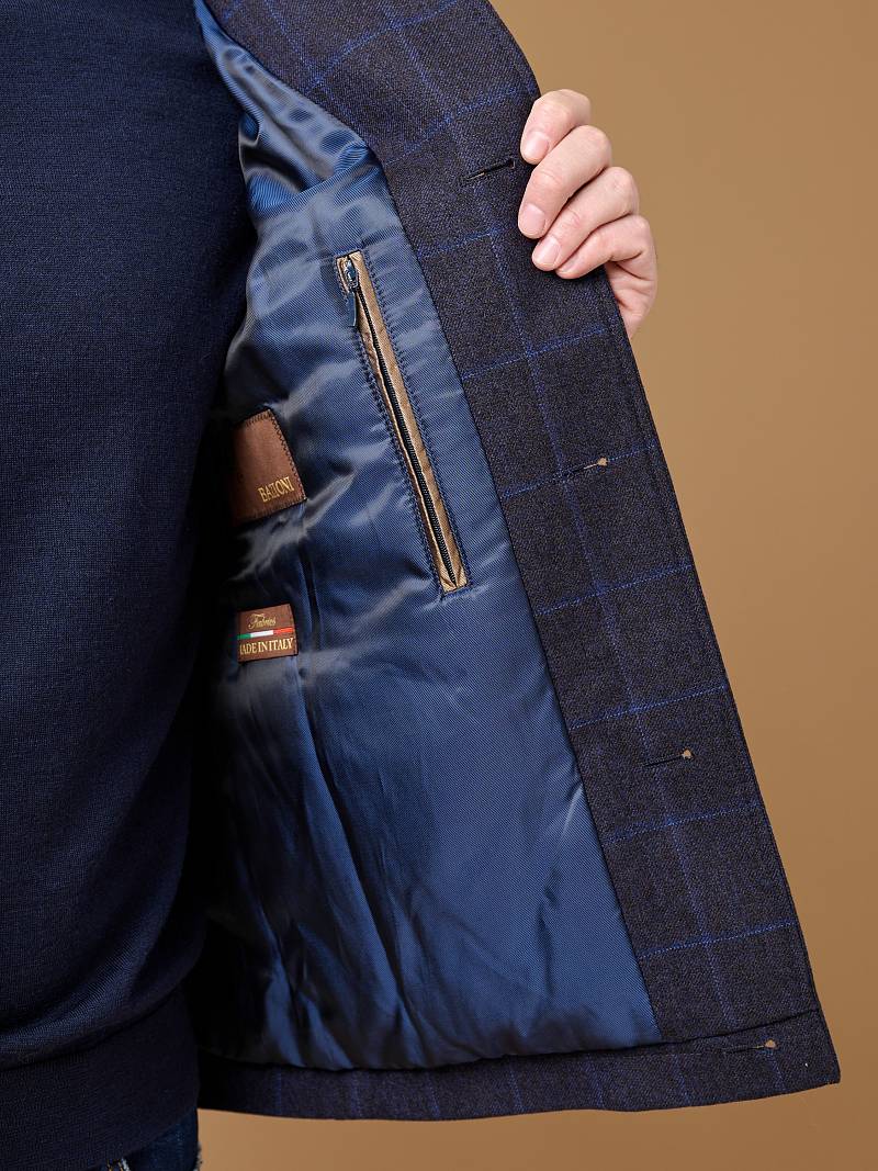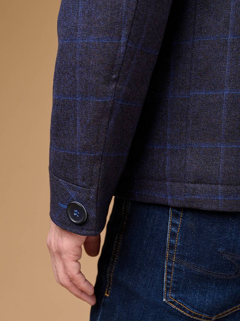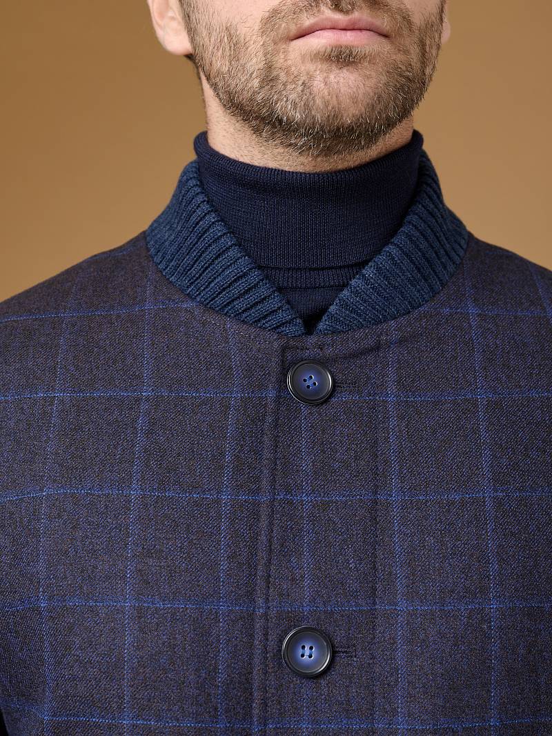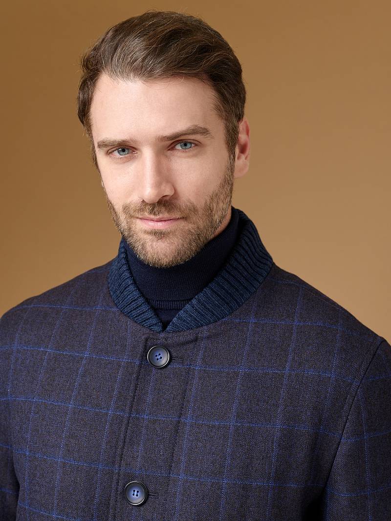 Пальто мужское (укороченное), утепленное с воротником-стойка. Центральная застежка на пуговицы. Боковые наклонные карманы листочки, притачной манжет на верхней детали рукава с пуговицей,