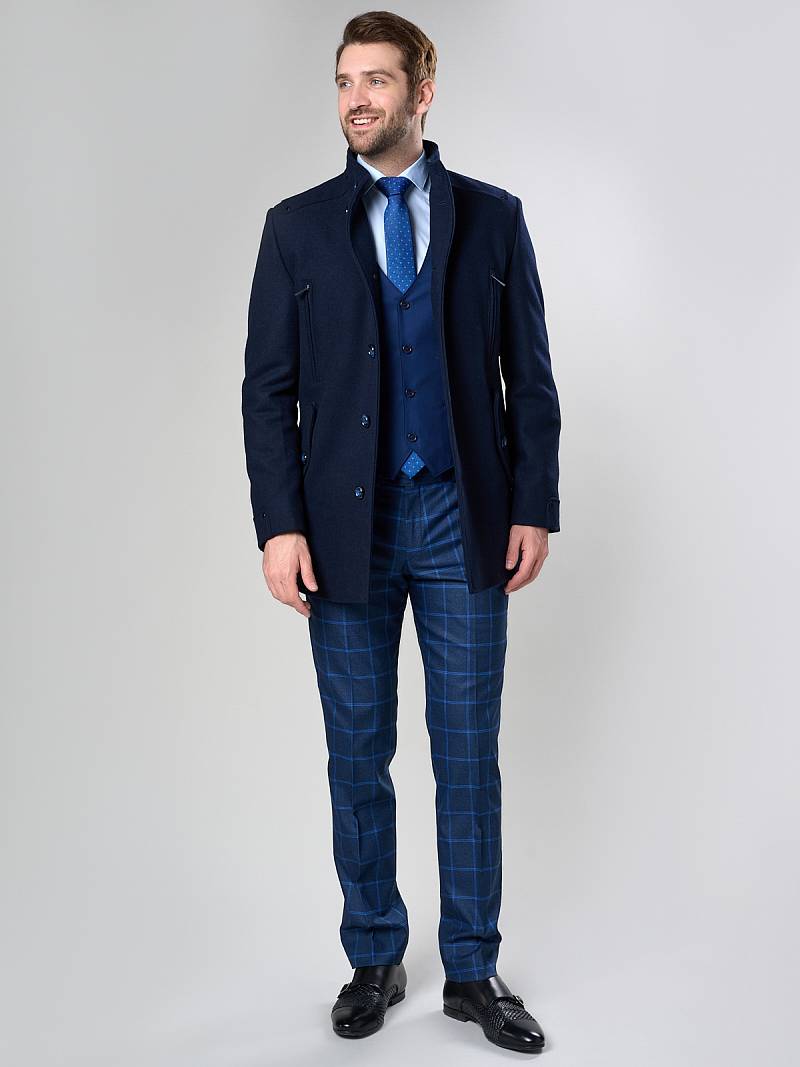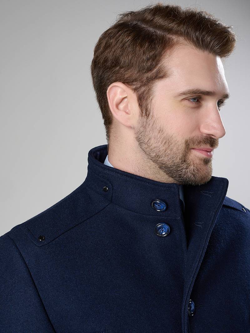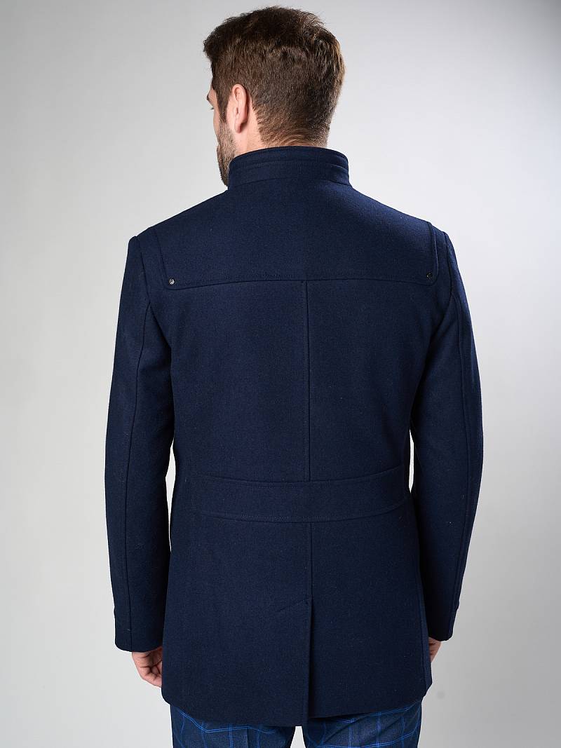 Пальто мужское утепленное с застежкой на 6 пуговиц, воротник - стойка. Полочка и спинка с фигурными кокетками и рельефами. На полочках - верхние и нижние карманы: верхние нагрудные карманы на молниях, нижние - на пуговицах с клапаном. Спинка со шлицей в среднем шве. Также на спинке по линии талии расположен притачной пояс. Рукава втачные двушовные, по низу рукава - фигурная деталь с хольнитеном. Хольнитены также расположены в углах кокеток полочек и спинки, отрезных деталей низа рукавов. Подкладка стеганная - рисунок "ромб". Длина изделия по спинке для роста 176 - 82см. Ткань верха: 100% шерсть. Подкладка: 100% вискоза. Утеплитель: Термоплюс 80гр/60гр