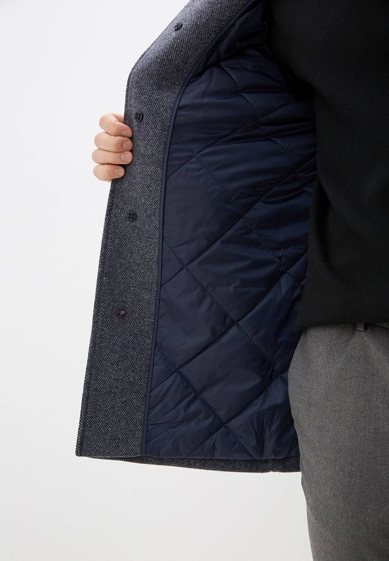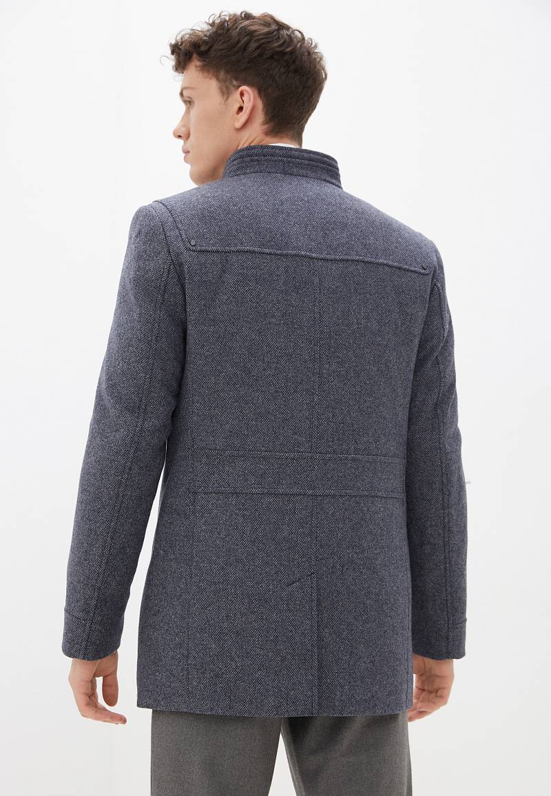 Пальто мужское утепленное с застежкой на 6 пуговиц, воротник - стойка. Полочка и спинка с фигурными кокетками и рельефами. На полочках - верхние и нижние карманы: верхние нагрудные карманы на молниях, нижние - на пуговицах с клапаном. Спинка со шлицей в среднем шве. Также на спинке по линии талии расположен притачной пояс. Рукава втачные двушовные, по низу рукава - фигурная деталь с хольнитеном. Хольнитены также расположены в углах кокеток полочек и спинки, отрезных деталей низа рукавов. Подкладка стеганная - рисунок "ромб". Длина изделия по спинке для роста 176 - 82см. Ткань верха: 100% шерсть. Подкладка: 100% вискоза. Утеплитель: Термоплюс 80 гр./60 гр.