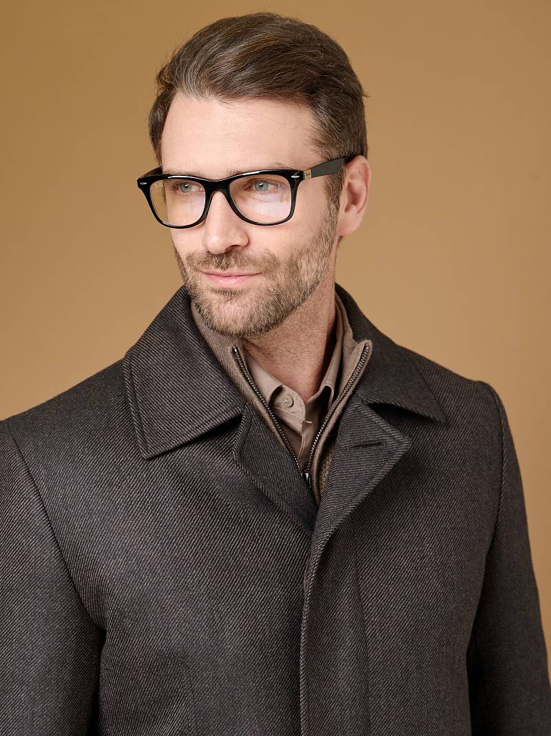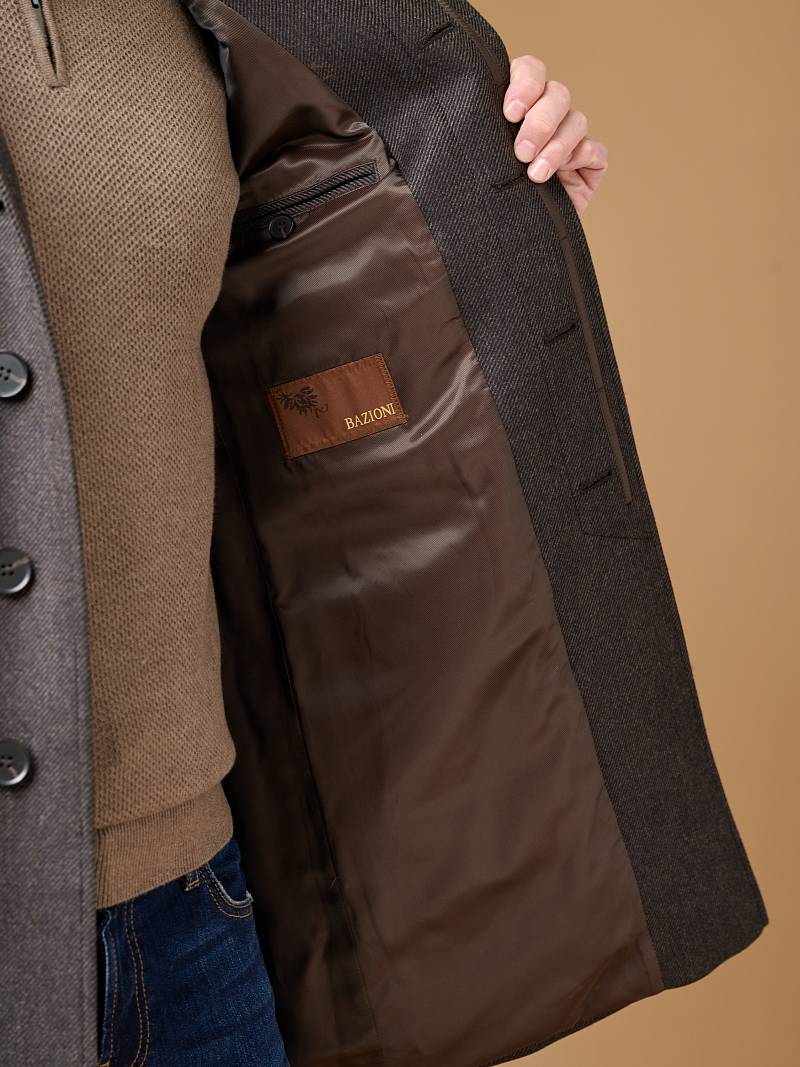 Классическое утепленное пальто (ПРИЛЕГАЮЩИЙ СИЛУЭТ). Мастера марки BAZIONI сшили прямое однобортное пальто для осенне-зимней коллекции. Модель с отложным воротником и супатной застежкой беспроигрышный вариант, который одинаково хорошо сочетается, как с формальным костюмом, так и с вещами в стиле casual. Пальто комфортно садится по фигуре, высокая шлица не дает изделию сковывать шаг при ходьбе, а мягкая линия плеч не утяжеляет силуэт. Для пошива пальто использовали шерсть исключительного качества. Чтобы в таком изделии было комфортнее морозным днем, его дополнительно утеплили, при этом изделие получилось легким и теплым одновременно. Пальто обработано шелковой подкладкой с двумя внутренними карманами. Дизайнеры марки BAZIONI тщательно подходят к выбору материалов. Пуговицы подбираются и красятся индивидуально под каждую ткань, а прикладные материалы используют только от передовых производителей. Утеплитель: спинка-полочка-100г, рукава-60г. Пальто мужское, классическое, под джины, повседневный, молодежны