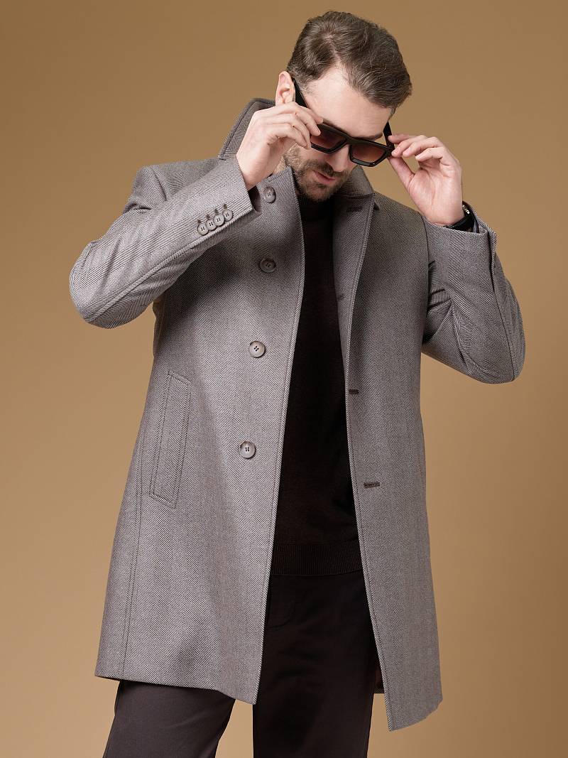 Классическое утепленное пальто (ПРИЛЕГАЮЩИЙ СИЛУЭТ). Мастера марки BAZIONI сшили прямое однобортное пальто для осенне-зимней коллекции. Модель с отложным воротником на четырех пуговицах и удобными боковыми карманами листочка- беспроигрышный вариант, который гармонично впишется в любой образ мужчины. Пальто комфортно садится по фигуре, высокая шлица не даст изделию сковывать шаг при ходьбе, а мягкая линия плеч не утяжеляет силуэт. Для пошива пальто использовали фактурную шерсть исключительного качества. Чтобы в таком изделии было комфортнее морозным днем, его дополнительно утеплили, при этом изделие получилось легким и теплым одновременно. Пальто обработано шелковой подкладкой с двумя внутренними карманами. Дизайнеры марки BAZIONI тщательно подходят к выбору материалов. Пуговицы подбираются и красятся индивидуально под каждую ткань, а прикладные материалы используют только от передовых производителей. Утеплитель: спинка-полочка-100г, рукава-60г. Пальто мужское, классическое, под джины, повседневный, моло
