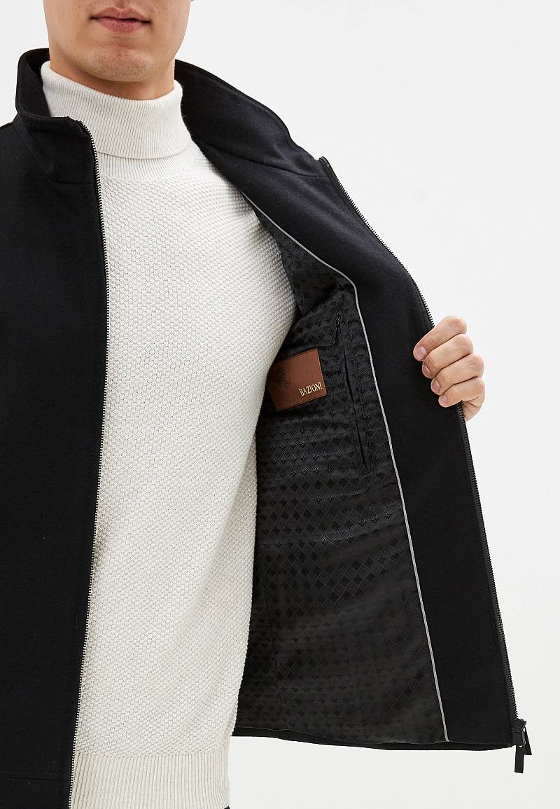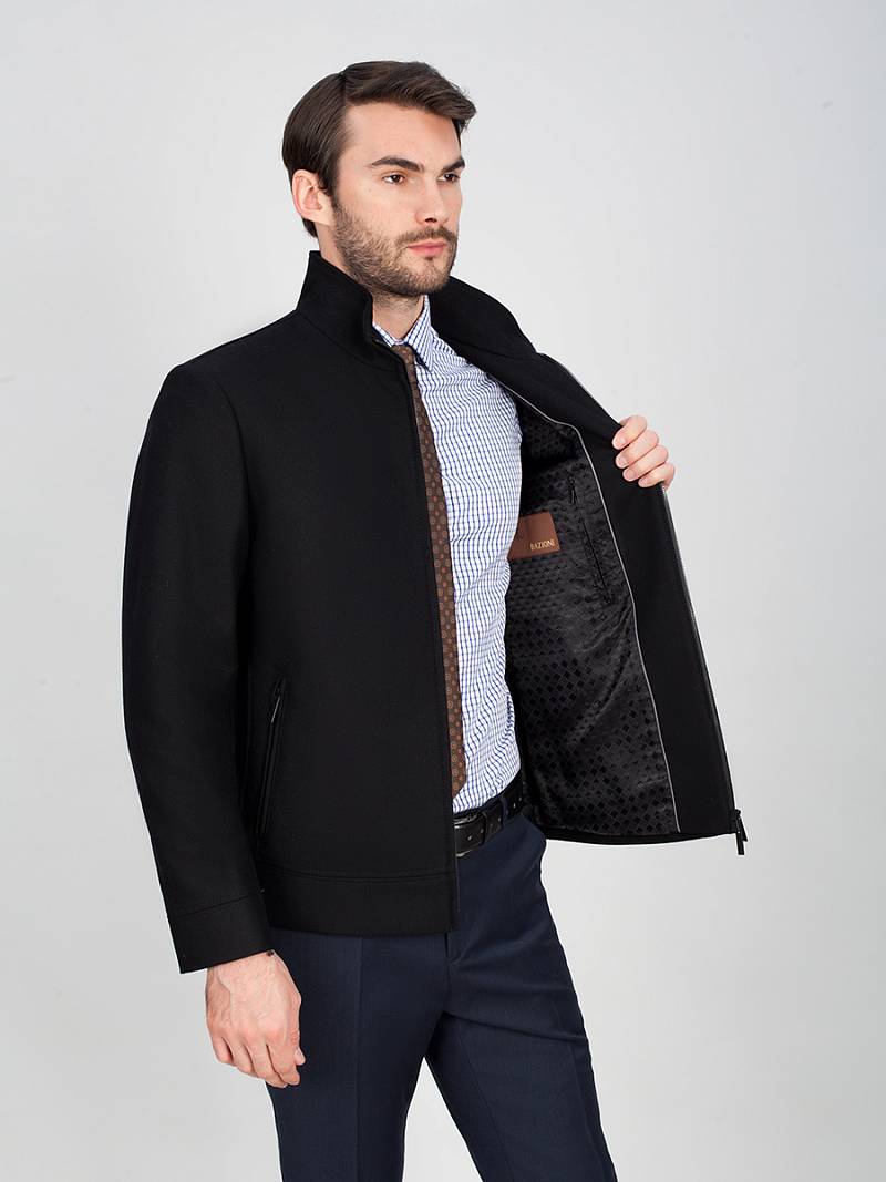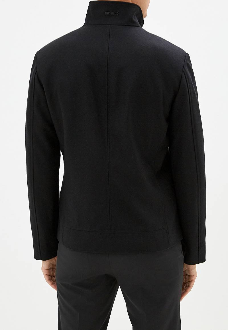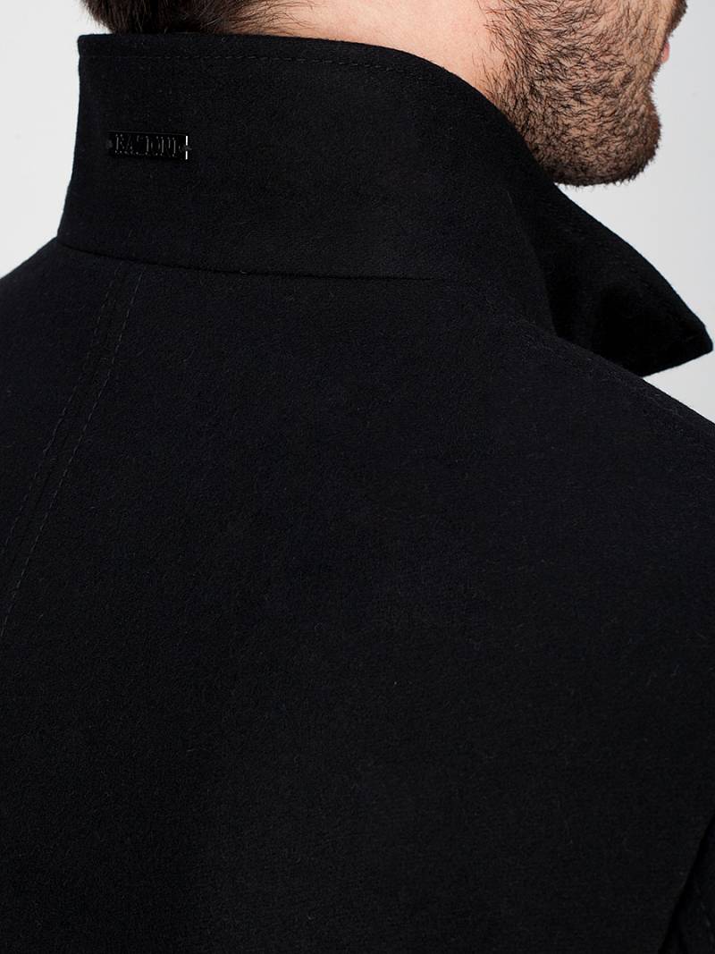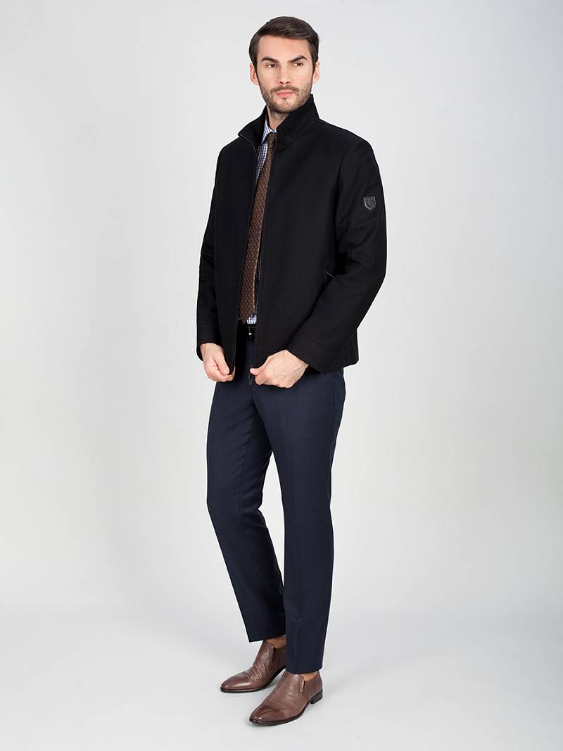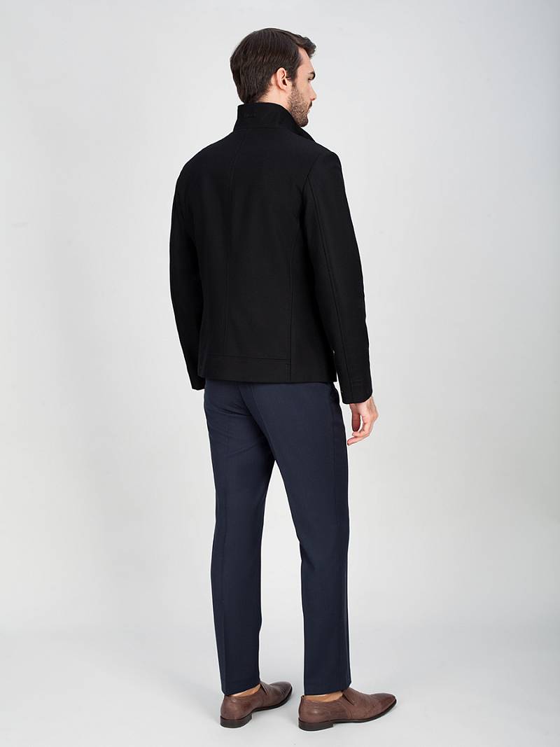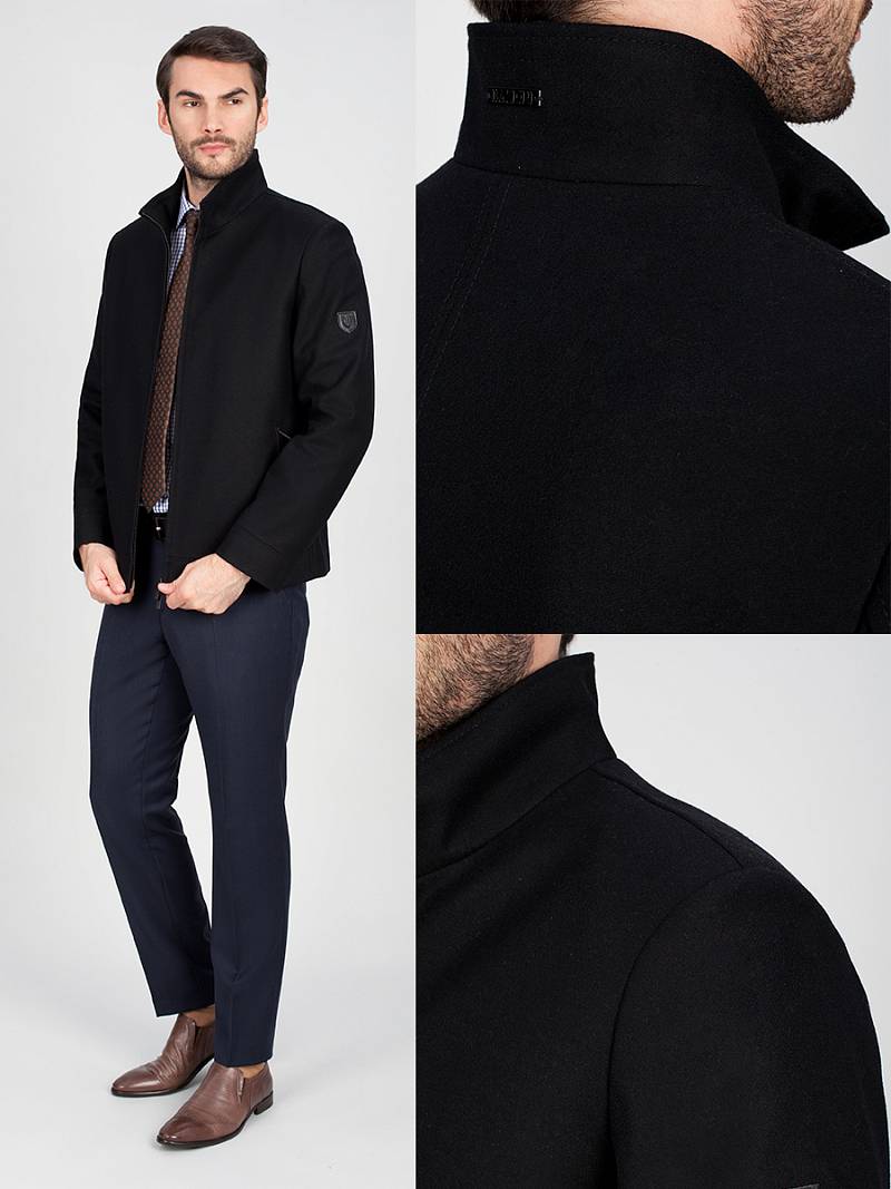 Укороченное мужское пальто с центральной застежкой на молнию. С отрезными боковыми частями, воротник-стойка, рукав втачной, в нижней части с отрезной деталью имитирующей манжет, боковой карман-прорезной "в рамку" с молнией. Спинка со средним швом. По низу изделия отрезная деталь имитирующая пояс.