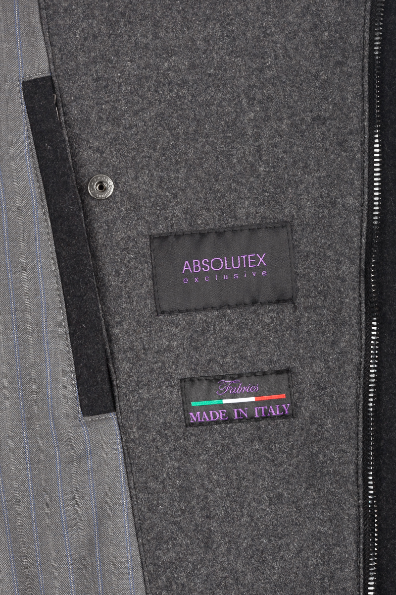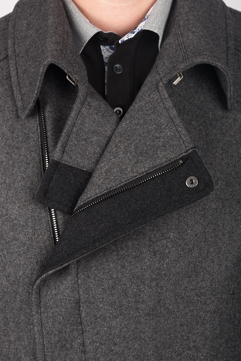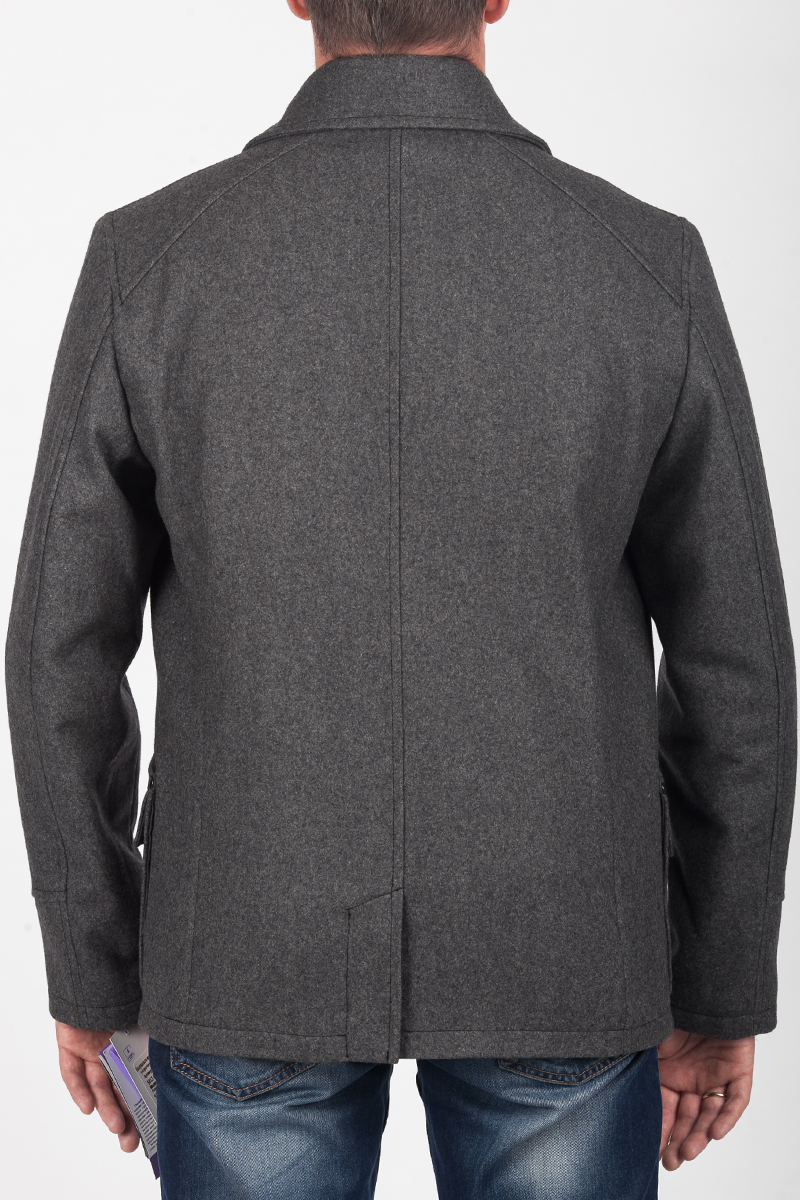 Пальто мужское укороченное с застежкой на молнию, на полочках - накладные карманы и прорезные карманы с клапаном