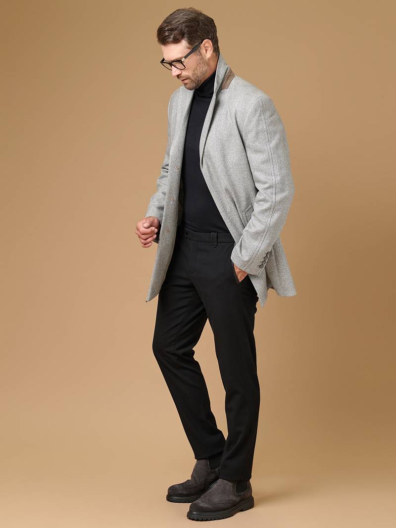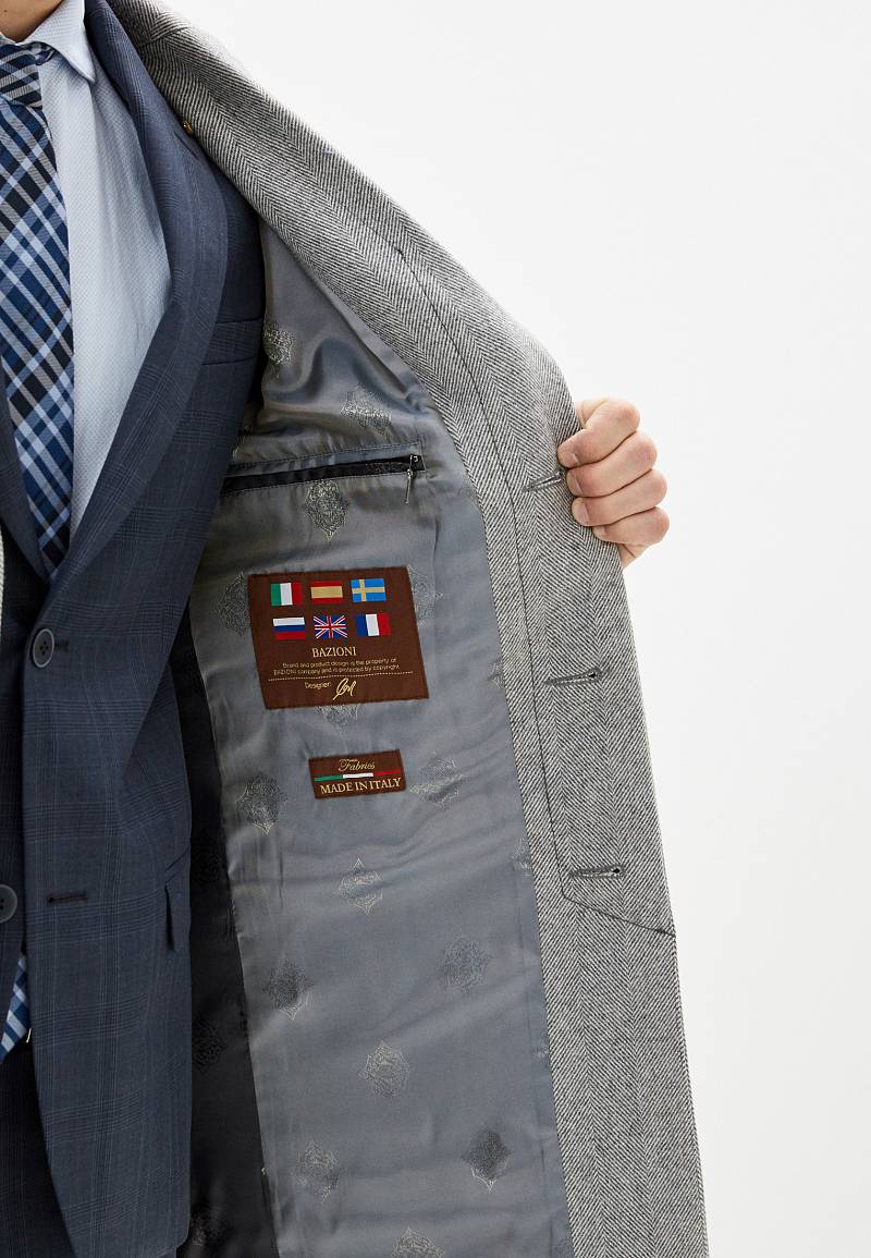 Пальто мужcкое, на супатной застёжке, боковые карманы с листочками.