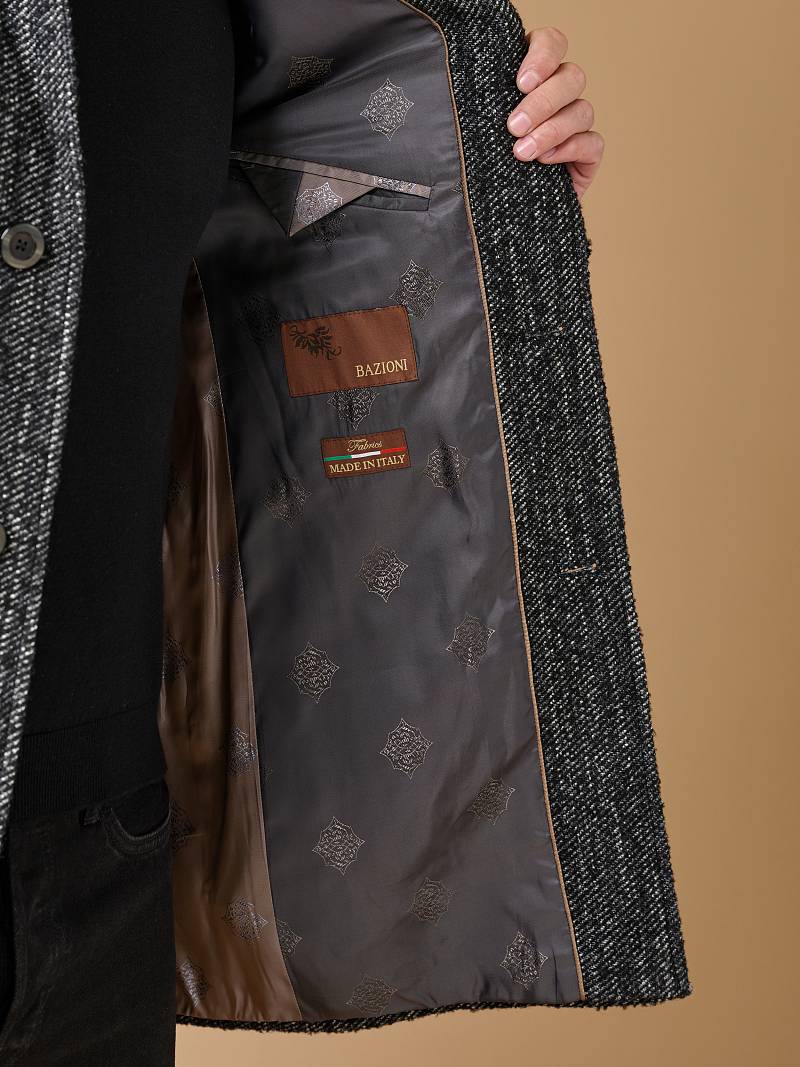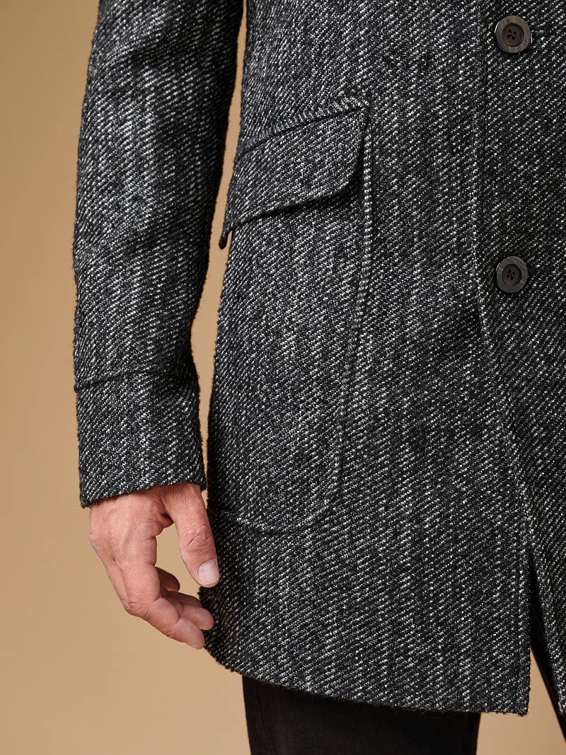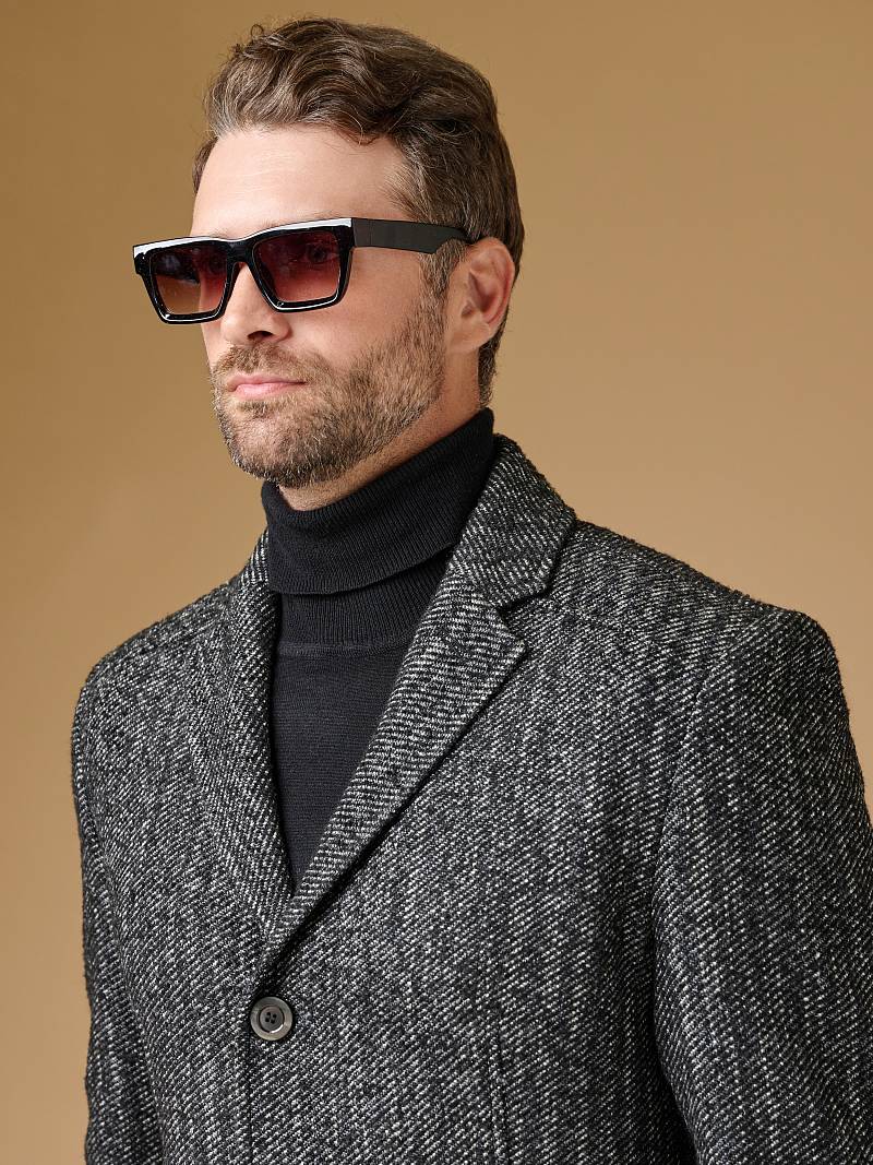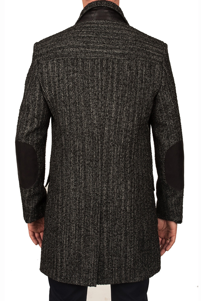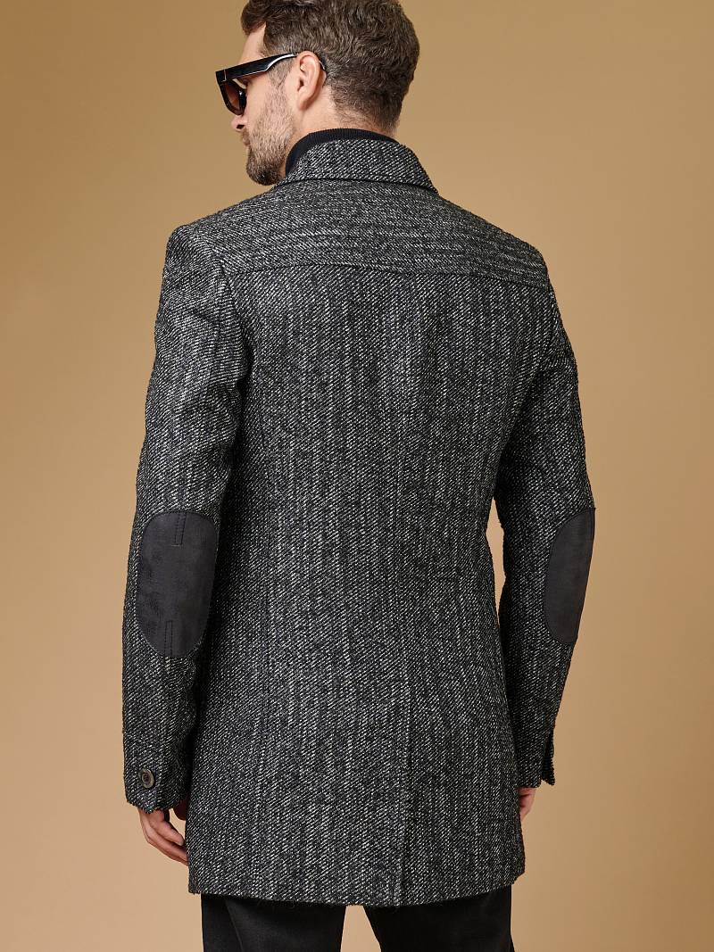 Пальто мужское, Застёжка центральная на пуговицы. Боковые карманы с клапаном. Налокотники.