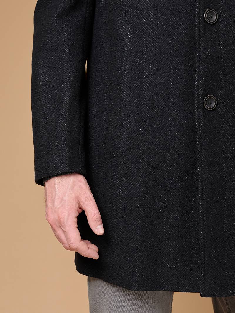Пальто застёжка на 3 пуговицы, воротник и форма лацкана классические, боковые карманы "в рельефе". Рукав втачной. Съёмный утеплитель.