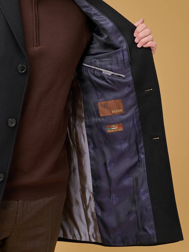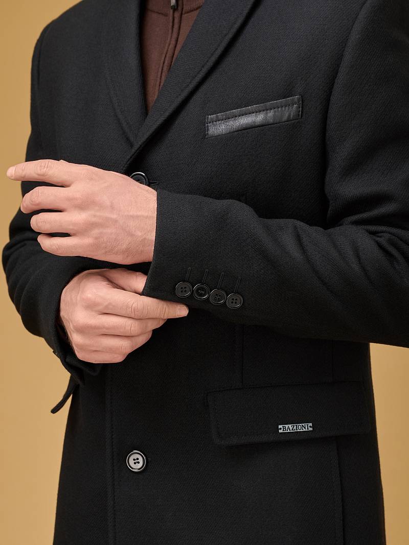 Пальто мужское, застёжка на 3 пуговицы, Воротник английский +трикотажный остёгивающийся, карманы с клапаном, одна шлица. BAZIONI