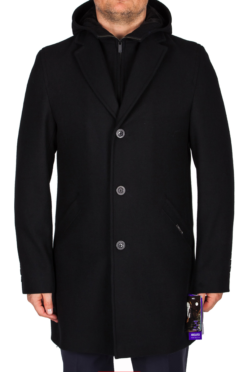 Пальто, застёжка на 3 пуговицы, боковые карманы листочки, съёмная манишка с капюшоном
