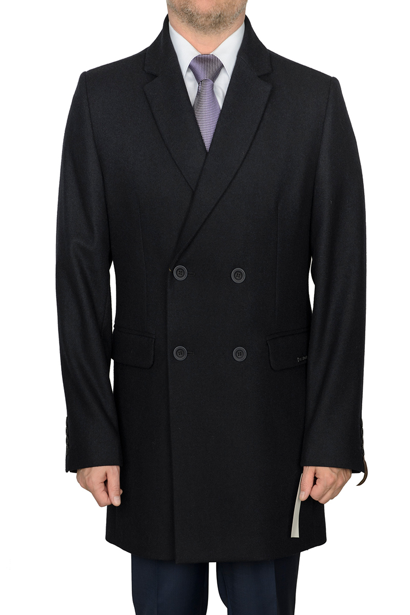 Двубортное пальто, воротник с лацканом классические, карман с клапаном. По спинке шлица.
