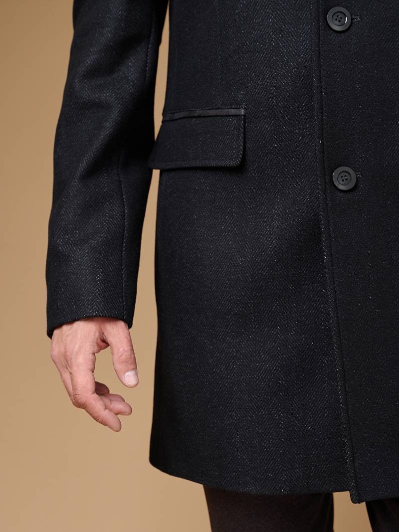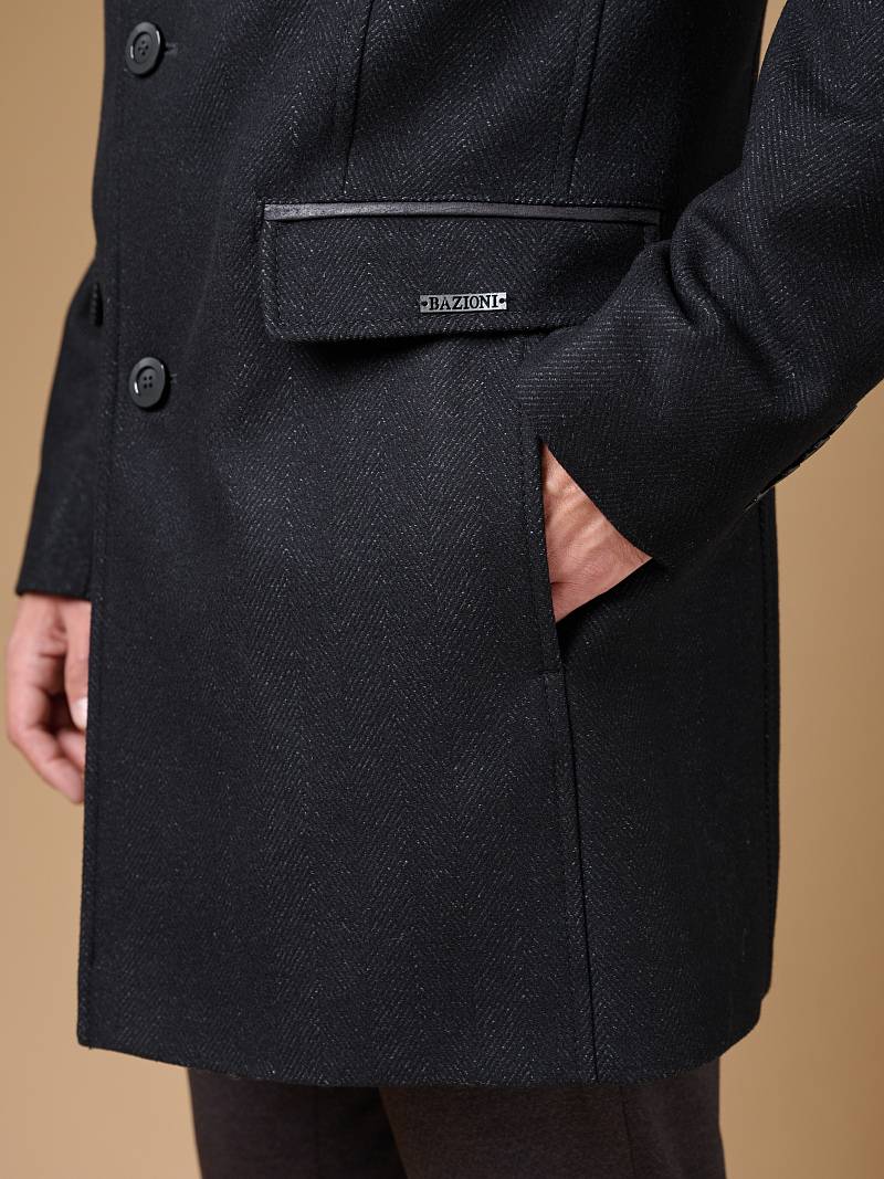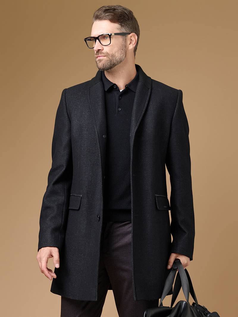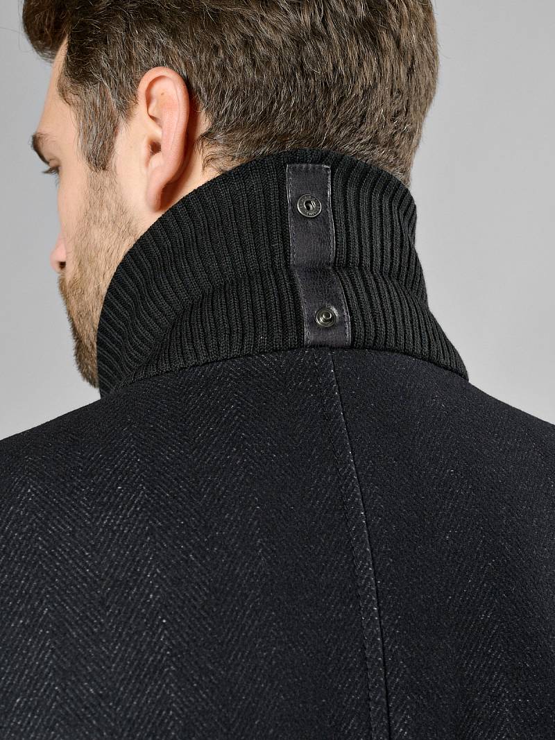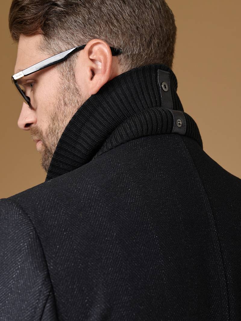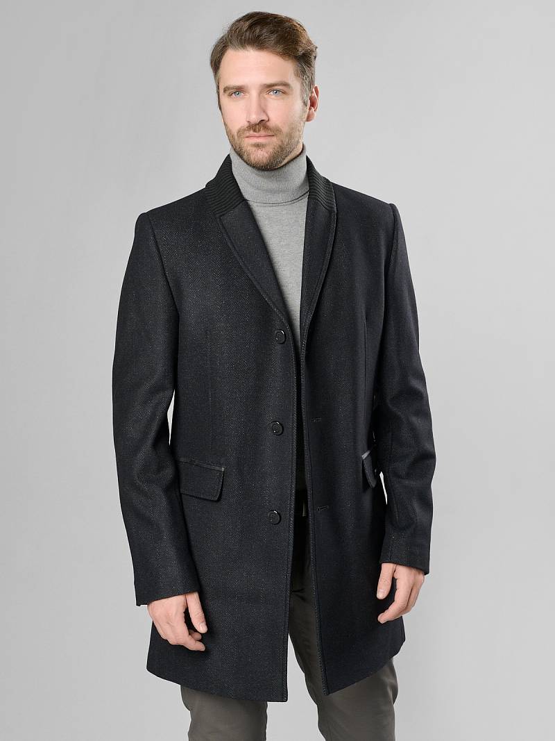 Пальто мужское, застёжка на 3 пуговицы, Воротник английский +трикотажный, карманы с клапаном, одна шлица.