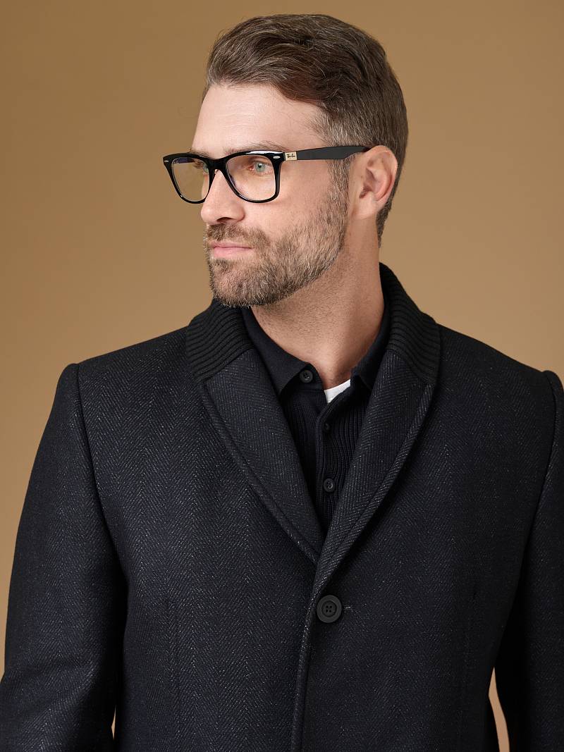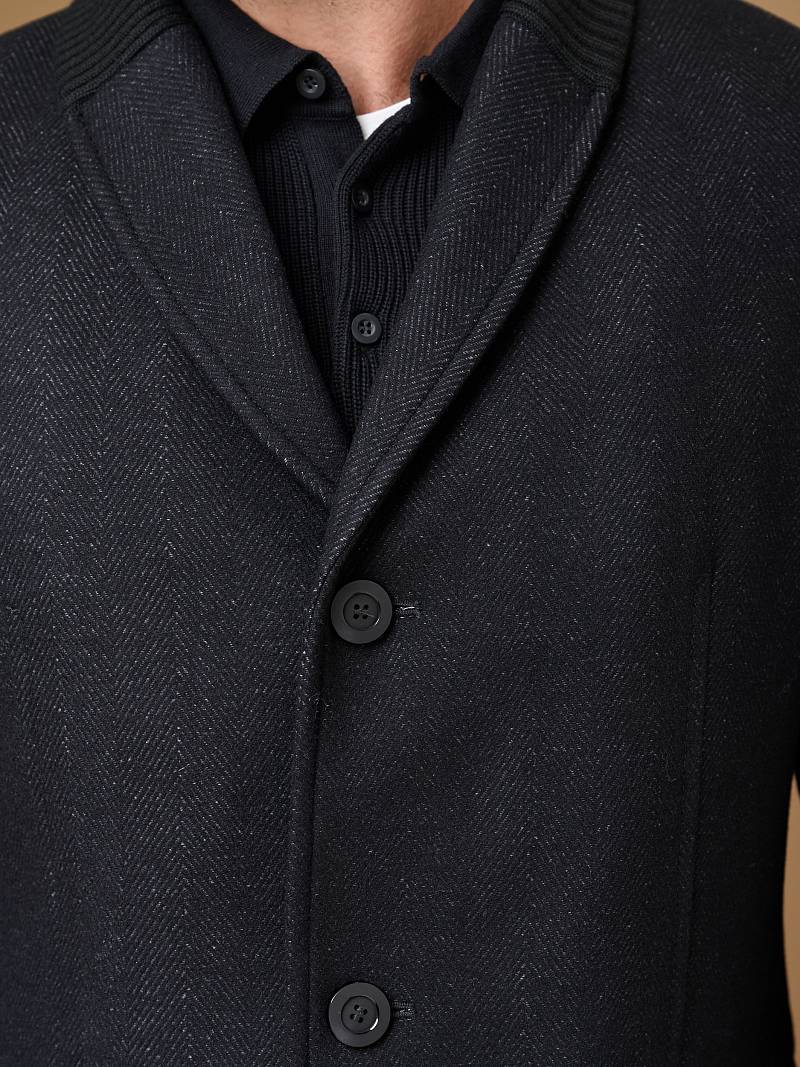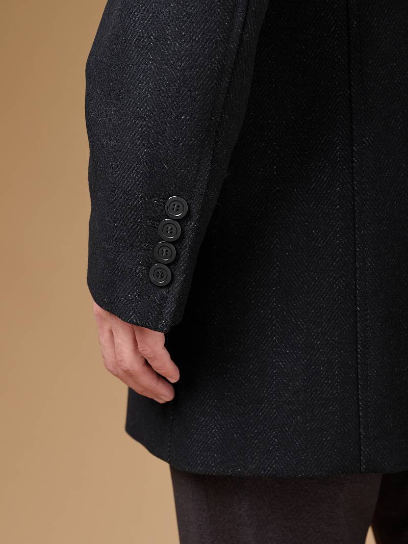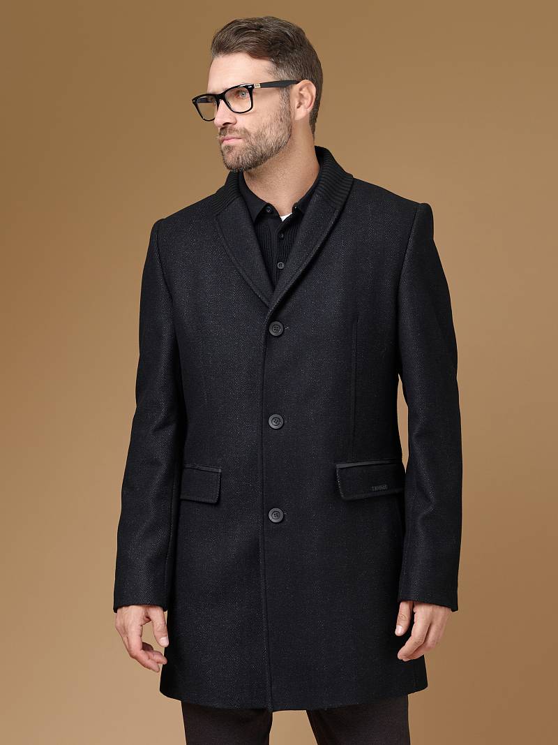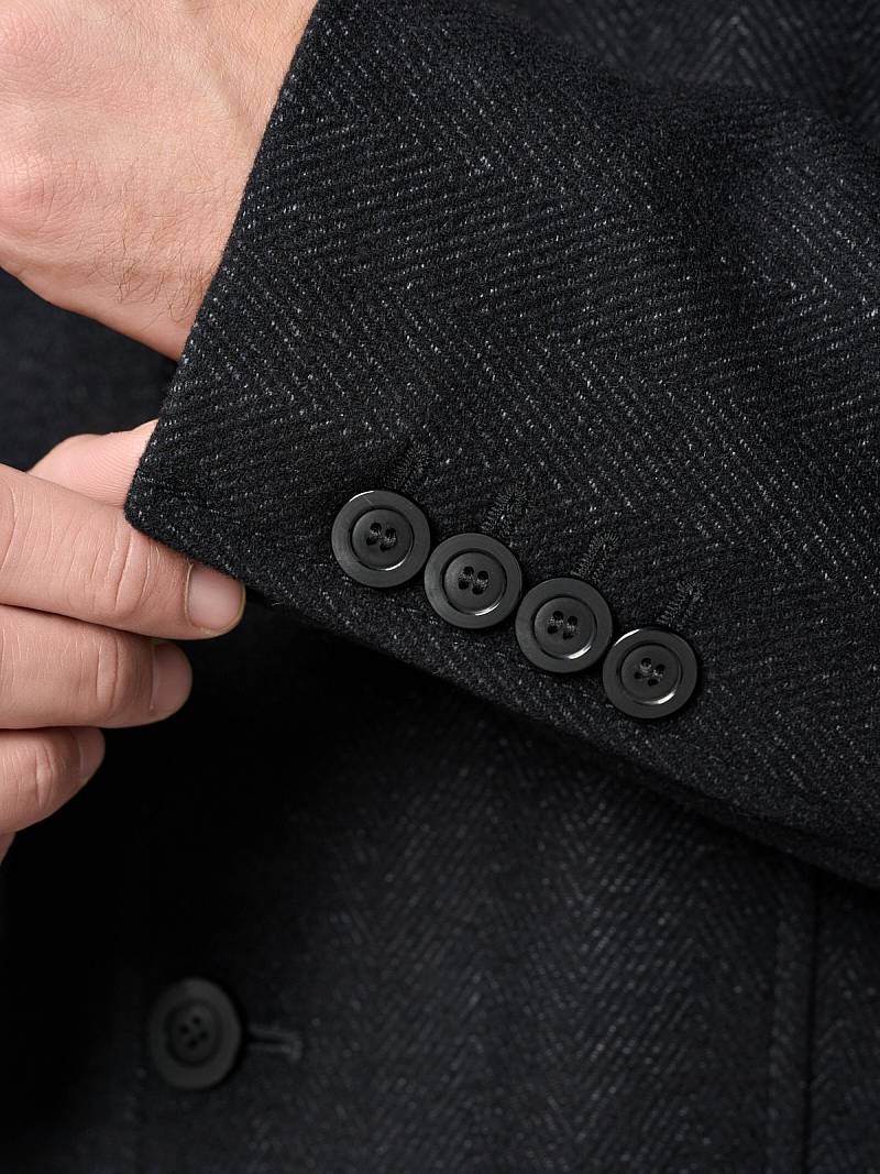 Пальто мужское, застёжка на 3 пуговицы, Воротник английский +трикотажный, карманы с клапаном, одна шлица.