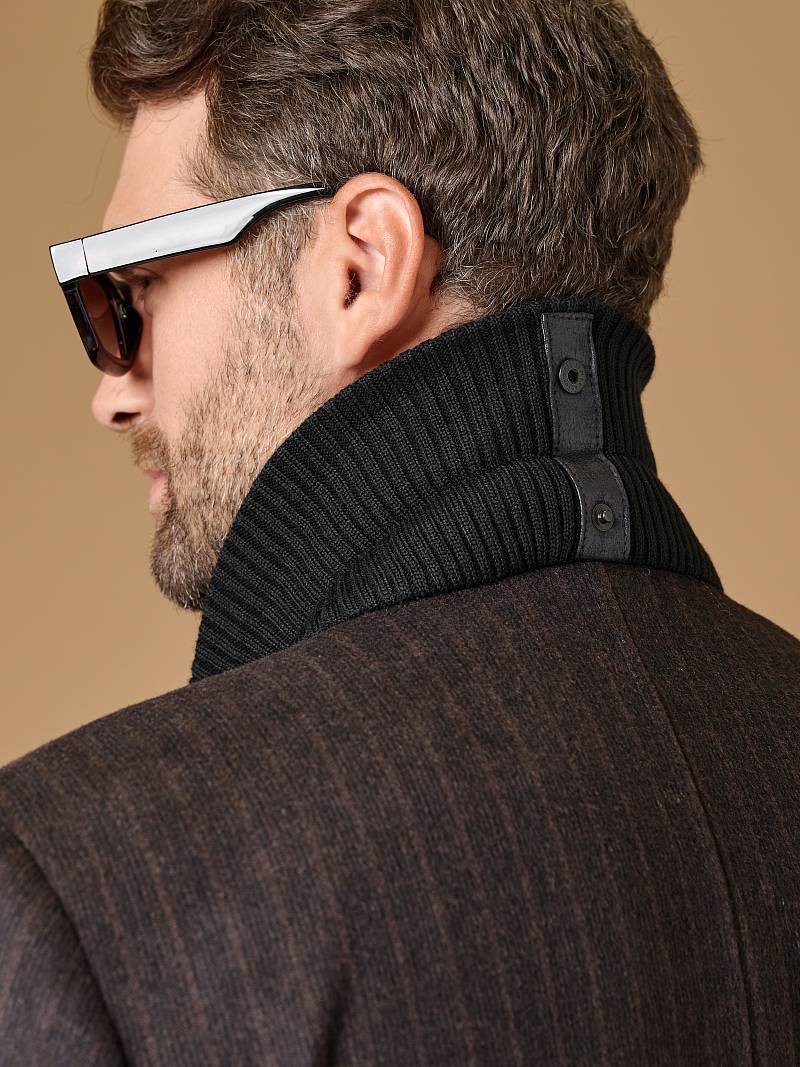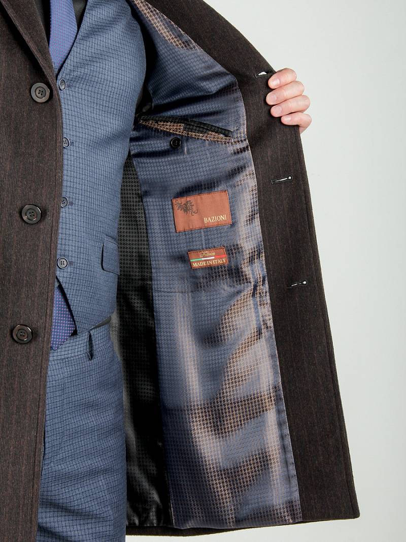 Пальто мужское, застёжка на 3 пуговицы, Воротник английский +трикотажный, карманы с клапаном, одна шлица. BAZIONI