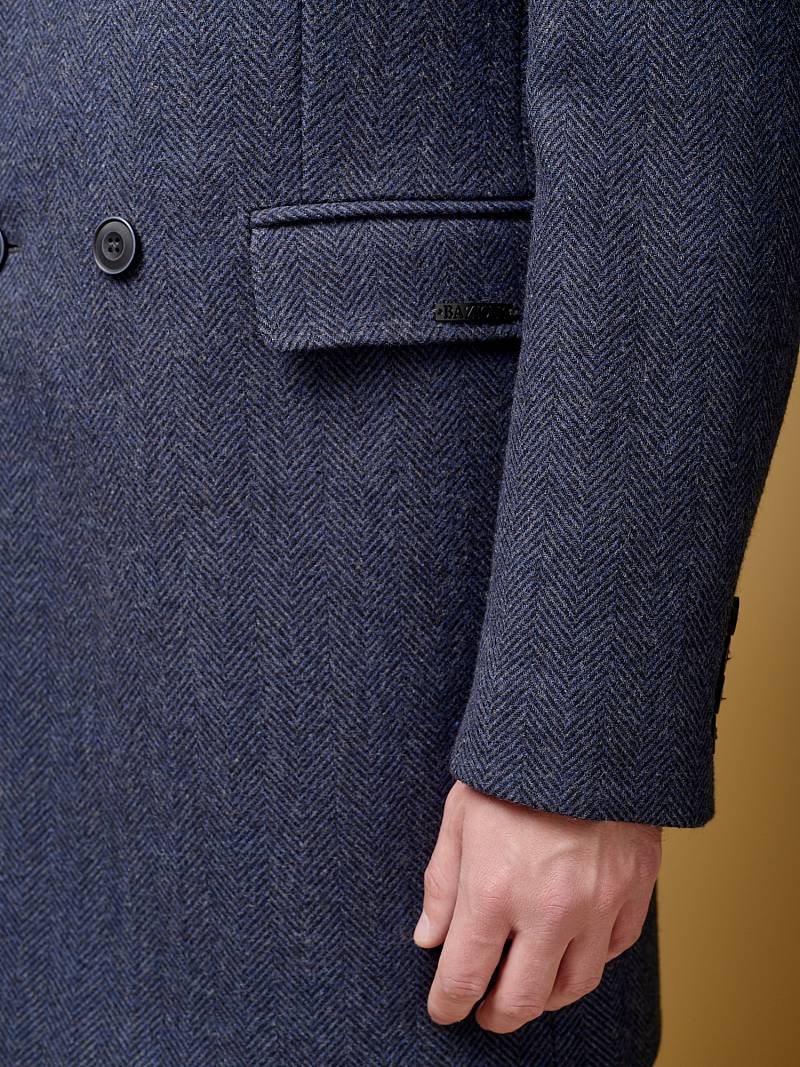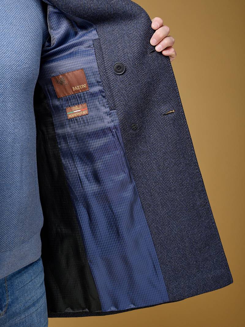 Пальто мужское, застёжка на 3 пуговицы, Воротник английский +трикотажный, карманы с клапаном, одна шлица. BAZIONI