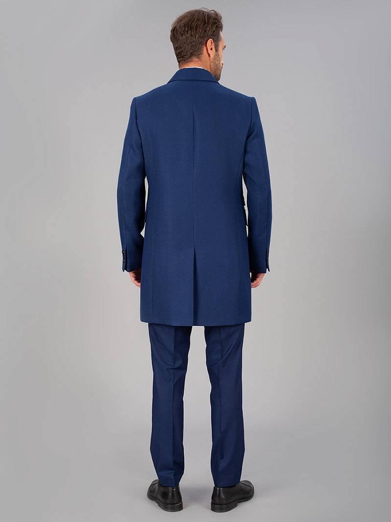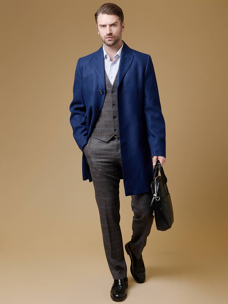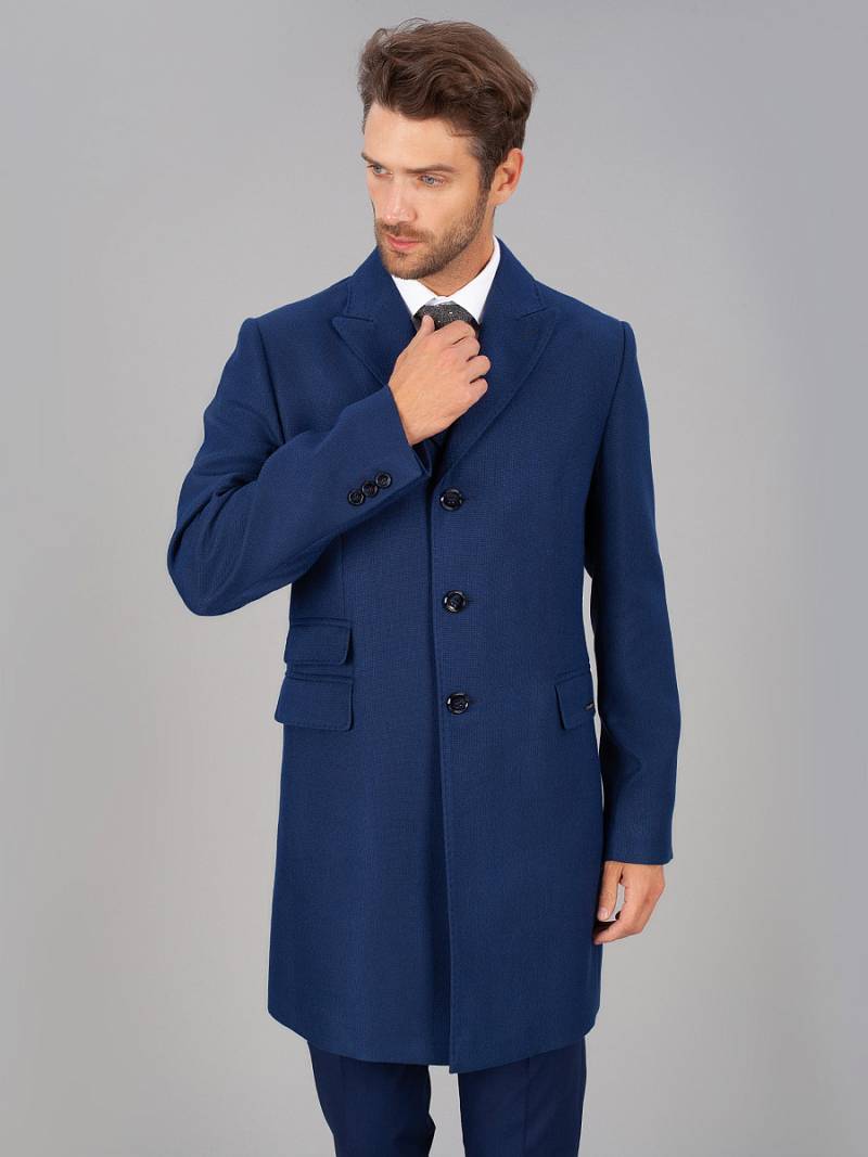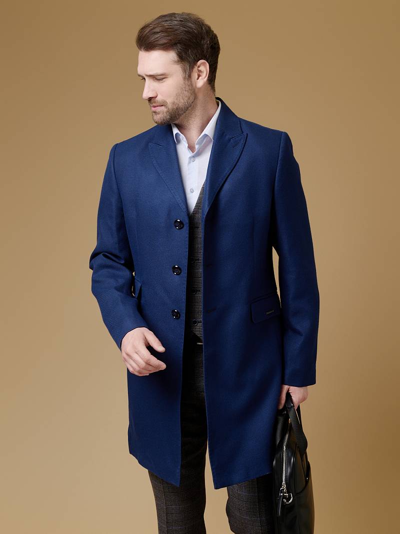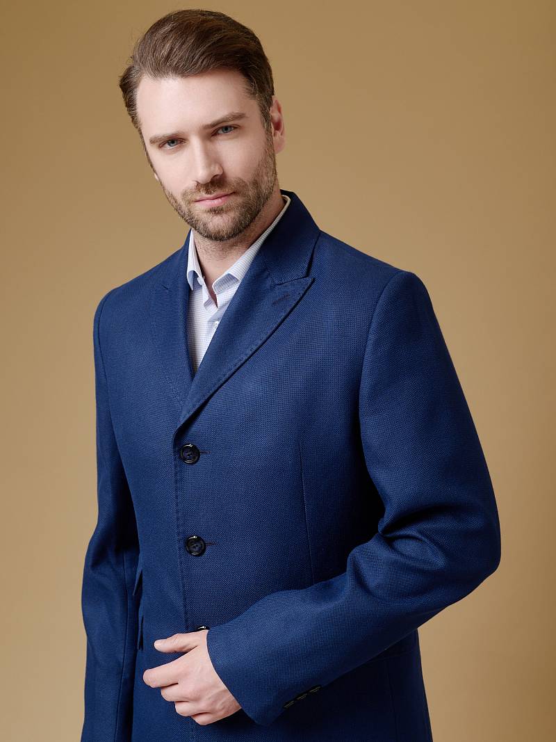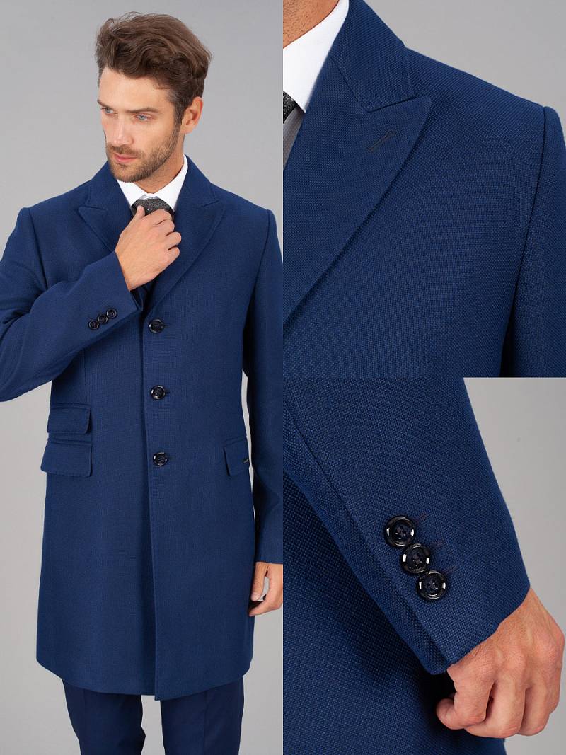 Пальто с центр.застежкой на 3 пуговицы, воротник классический, лацкан "ласточкин хвост", боковые карманы с клапанами, спинка со средним швом, по спинке шлица, рукава втачные с локтевым швом, по низу рукава шлица с 4 пуговицами. "Вспушка"-воротник, лацкан, борт, клапан. Длина изделия по спинке для роста 176 - 95см. Ткань верха: 100% шерсть. Подкладка: 50% вискоза, 50% полиэстер. Без утеплителя.