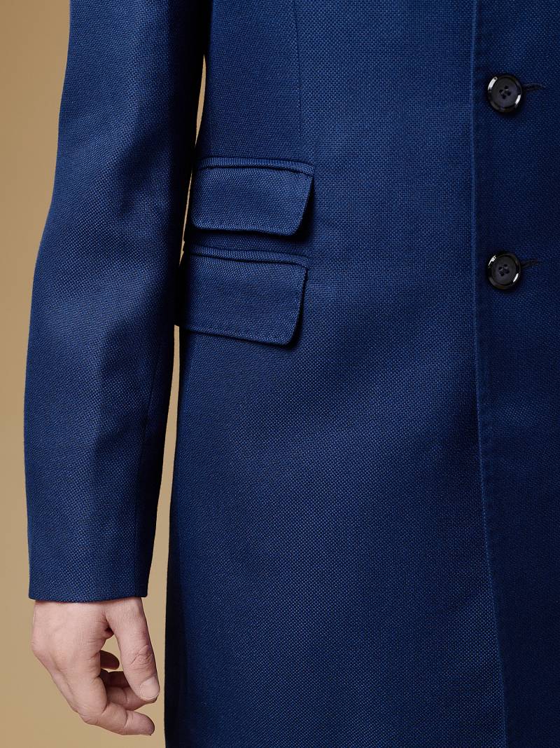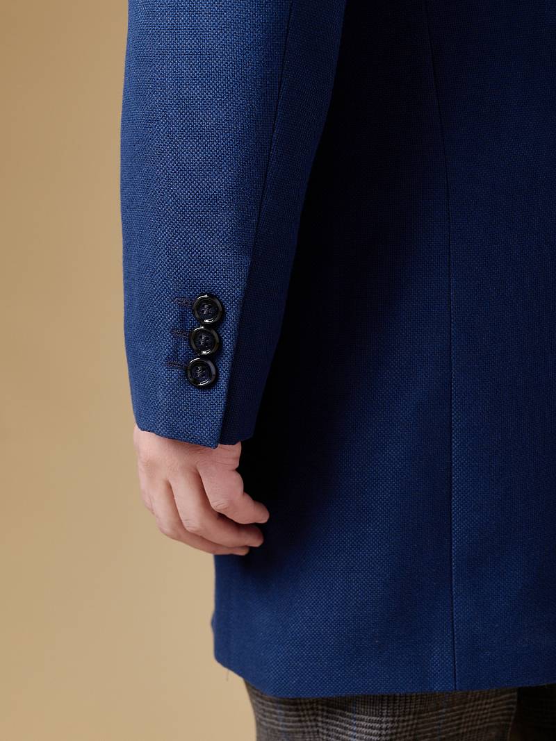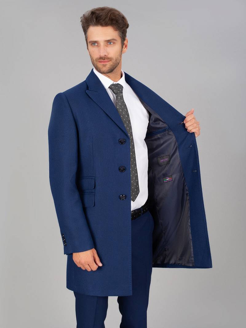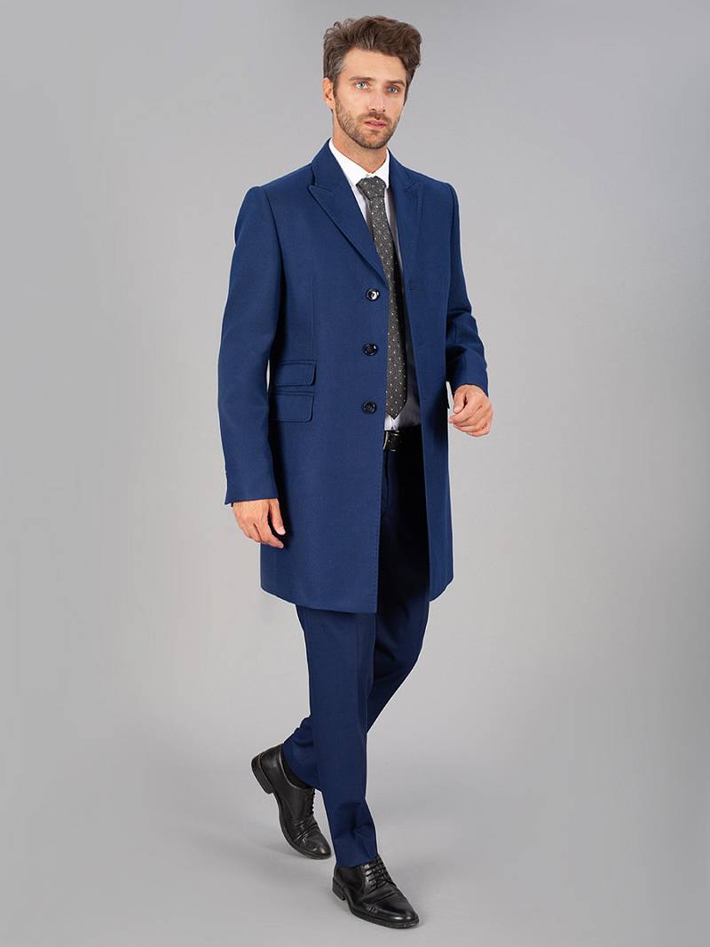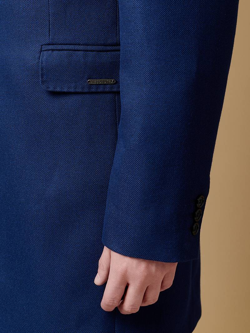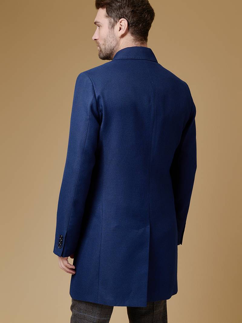 Пальто с центр.застежкой на 3 пуговицы, воротник классический, лацкан "ласточкин хвост", боковые карманы с клапанами, спинка со средним швом, по спинке шлица, рукава втачные с локтевым швом, по низу рукава шлица с 4 пуговицами. "Вспушка"-воротник, лацкан, борт, клапан. Длина изделия по спинке для роста 176 - 95см. Ткань верха: 100% шерсть. Подкладка: 50% вискоза, 50% полиэстер. Без утеплителя.