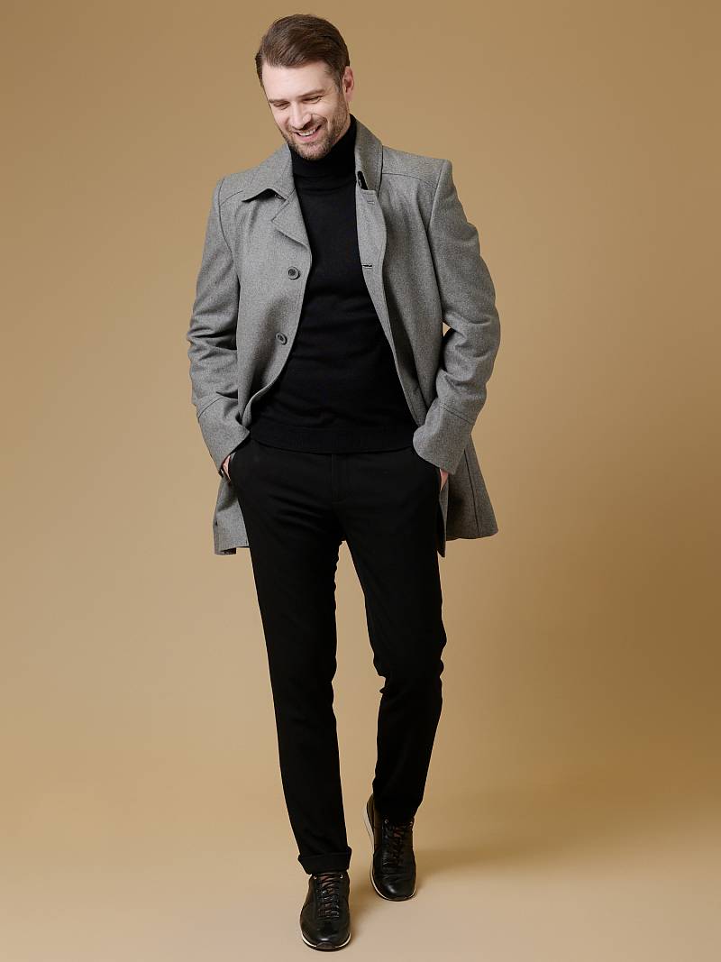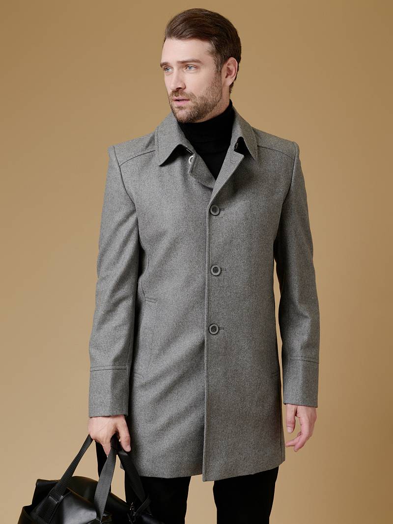 Пальто мужское. центральная застежка на пуг, боковые карманы "в рельефе", воротник отложн. на стойке, лацкан, шлица рукава и на спинке, кокетка спинки