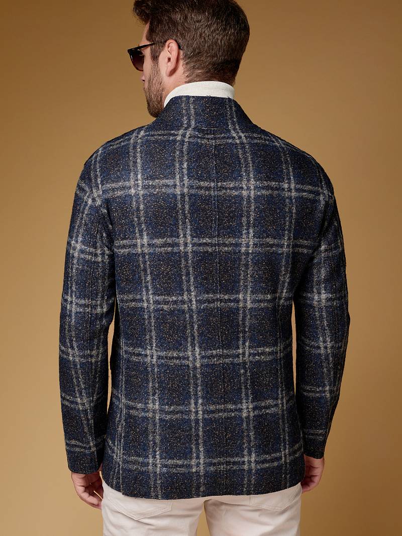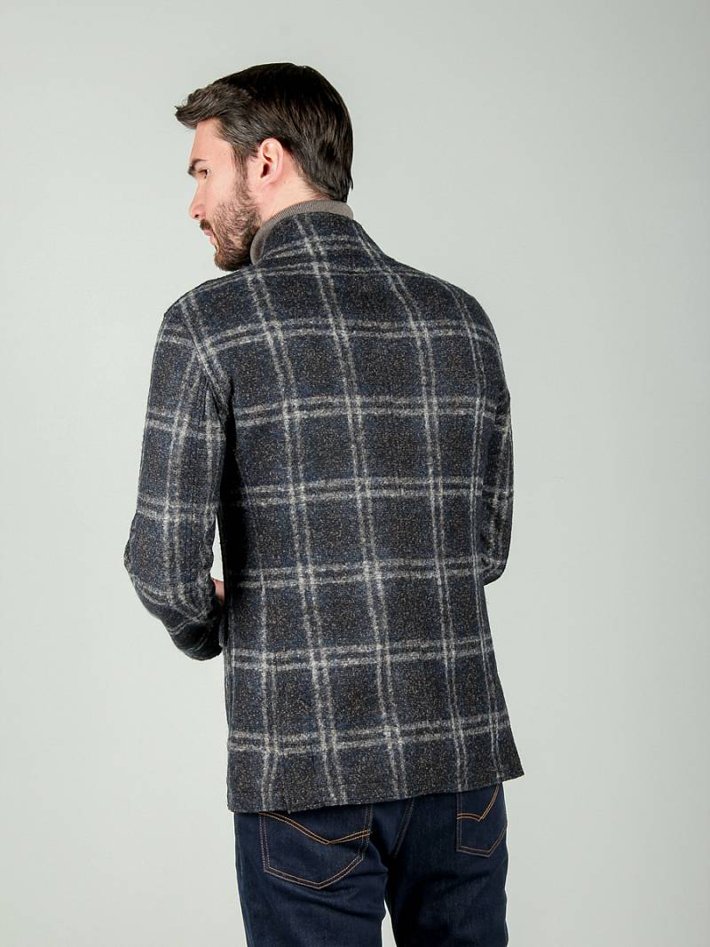 Полупальто мужское без подкладки из трикотажной ткани, застежка на молнию и кнопки. Карманы накладные с клапанами. Все срезы без обработки - в накладку накладным швом. На спинке - две шлицы. Длина изделия по спинке для размера 50/176 - 75см