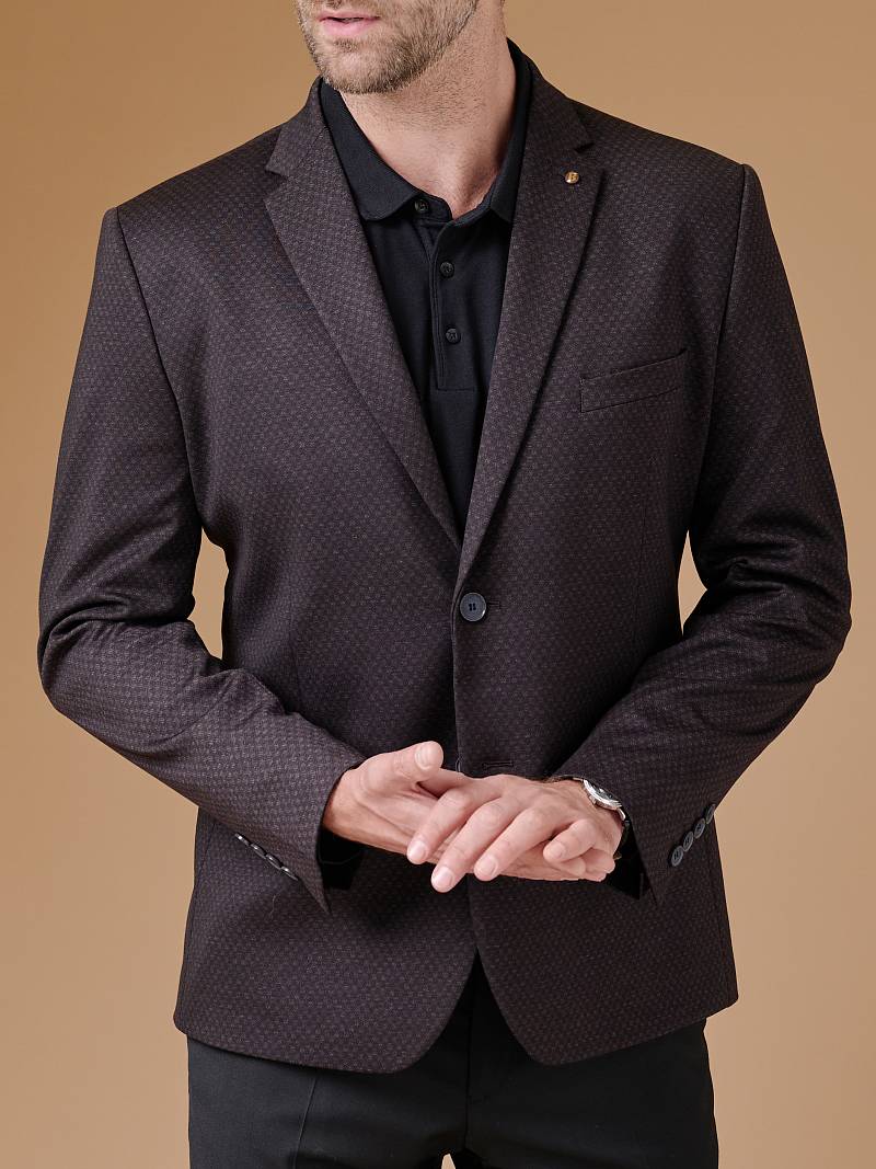Пиджак Slim fit на подкладке и на 2 пуговицы, 2 шлицы, Декоративная петля на лацкане. Пиджак с прорезными карманами с клапаном и верхним нагрудным карманом с листочкой.