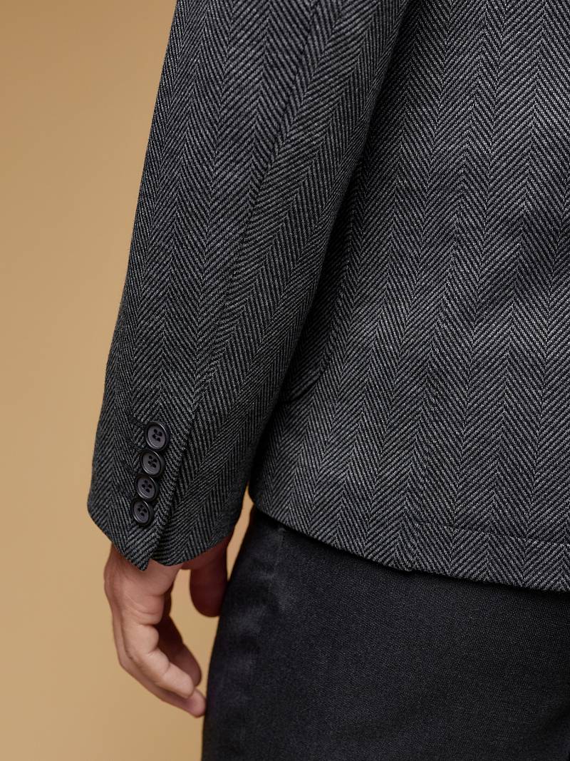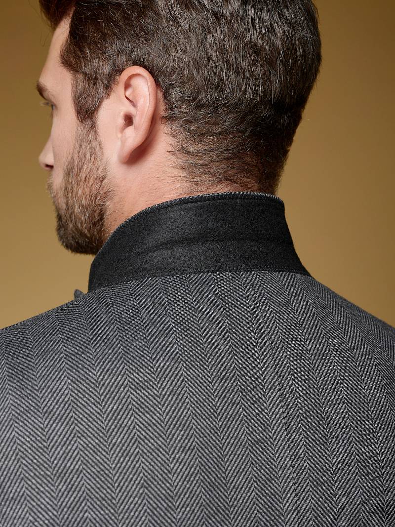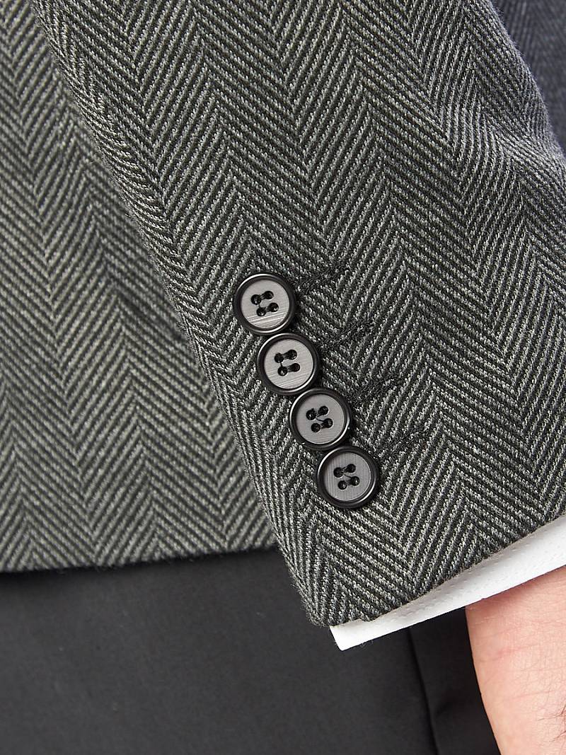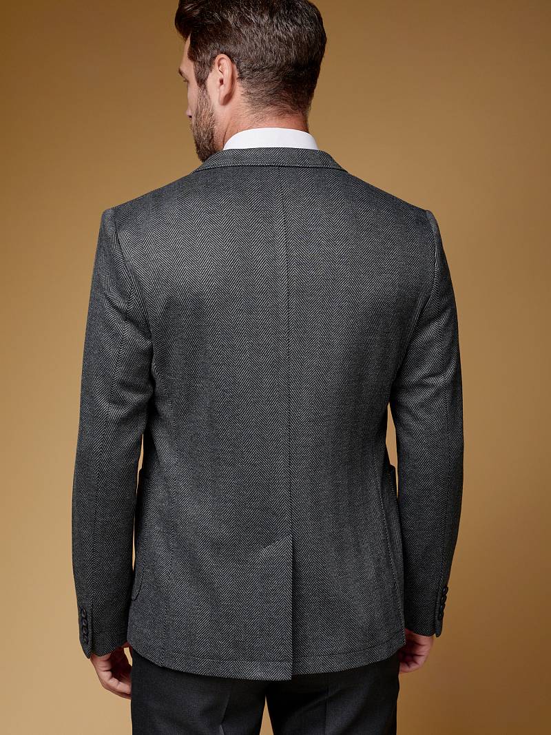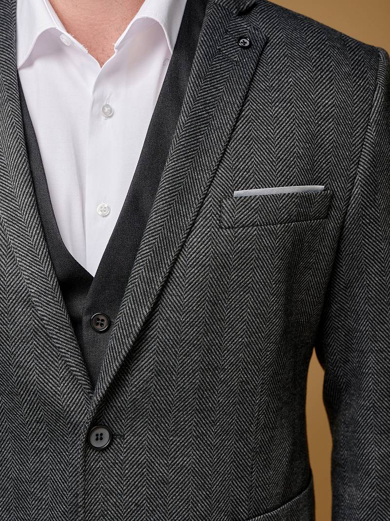 Slim fit, Классический мужской пиджак на две пуговицы, с боковыми карманами и одним нагрудным, по спинке одна шлица, без подкладки по спинке. Контрастные петли, декоративная пуговица на лацкане.