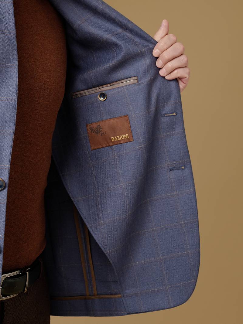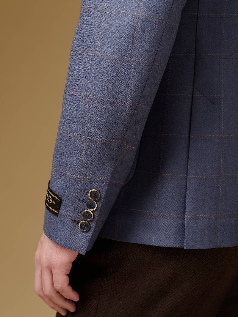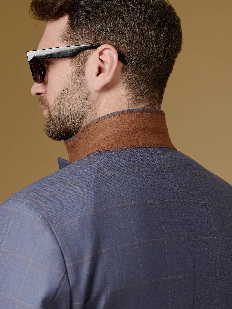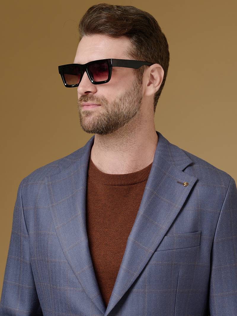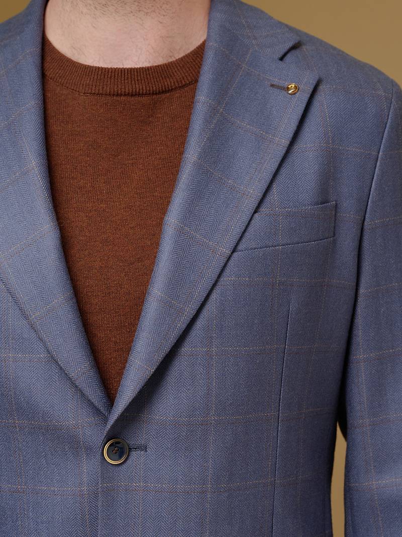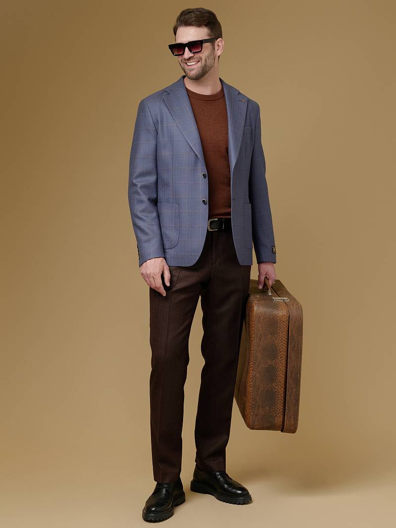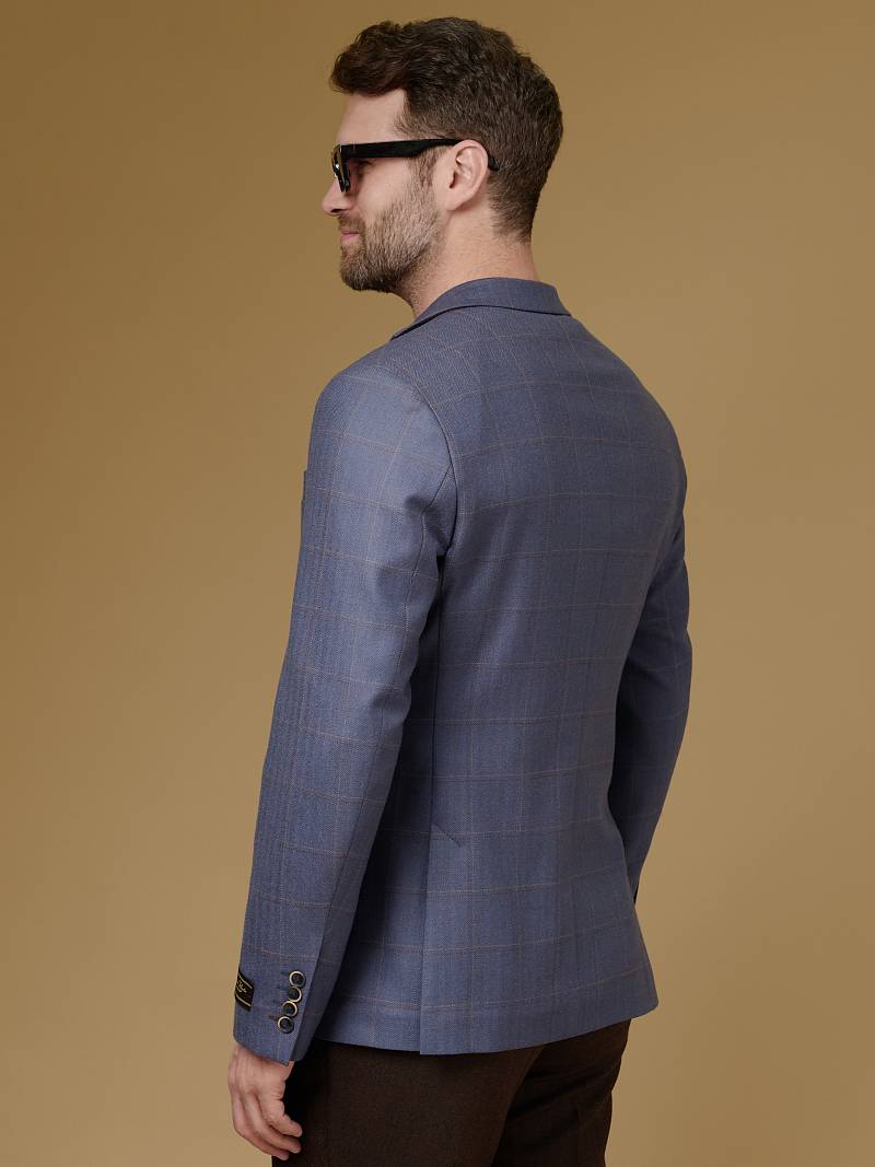 Classic fit (ПОЛУПРИЛЕГАЮЩИЙ СИЛУЭТ), Пиджак однобортный на две пуговицы, с двумя накладными боковыми карманами и нагрудной листочкой. Рукава втачные, двухшовные со шлицей и четырьмя декоративными пуговицами. По спинке расположены две шлицы. Пиджак облегченный без подкладки.
