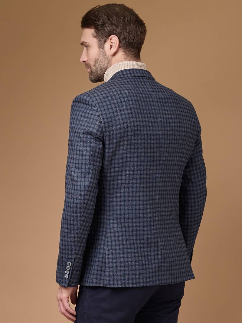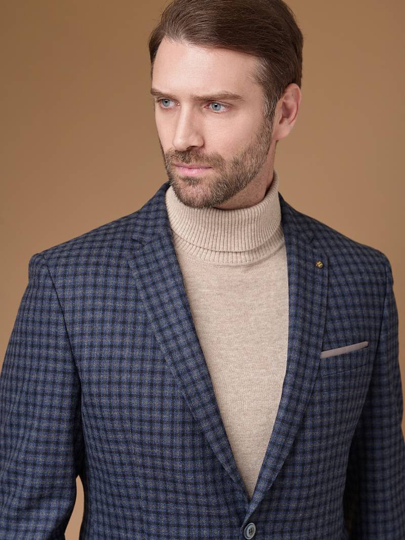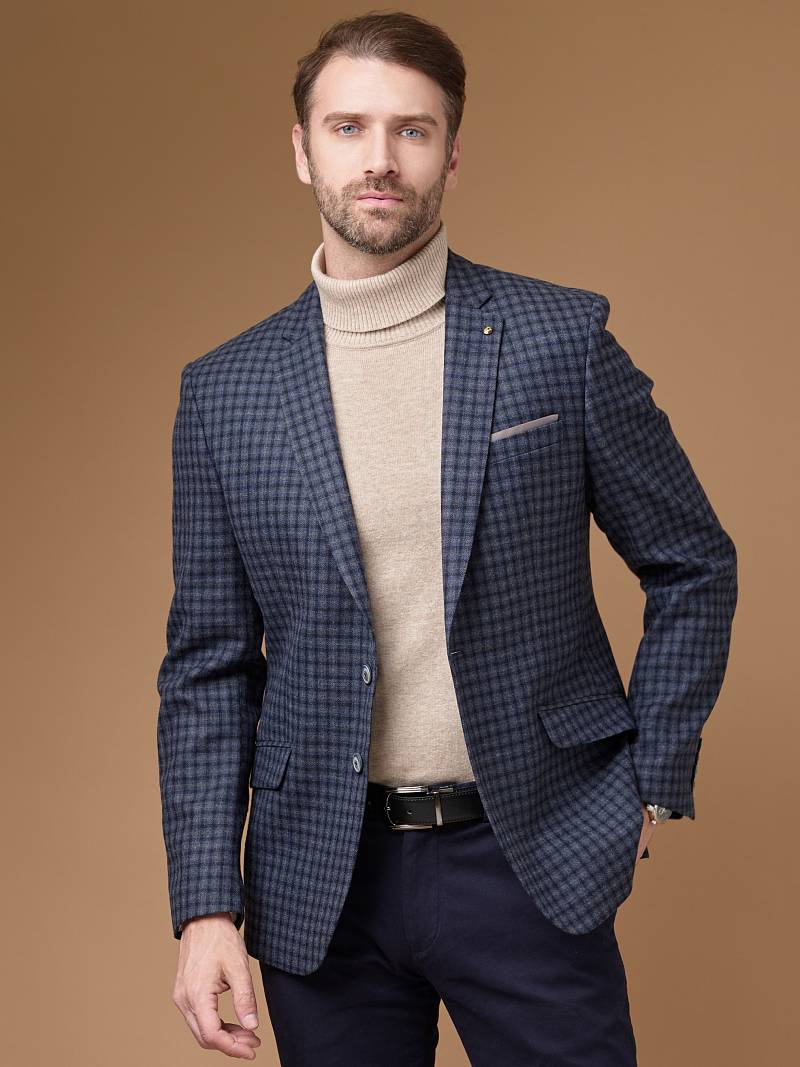 Slim fit, Классический мужской пиджак на две пуговицы, с боковыми и нагрудным карманами, по спинке две шлицы.