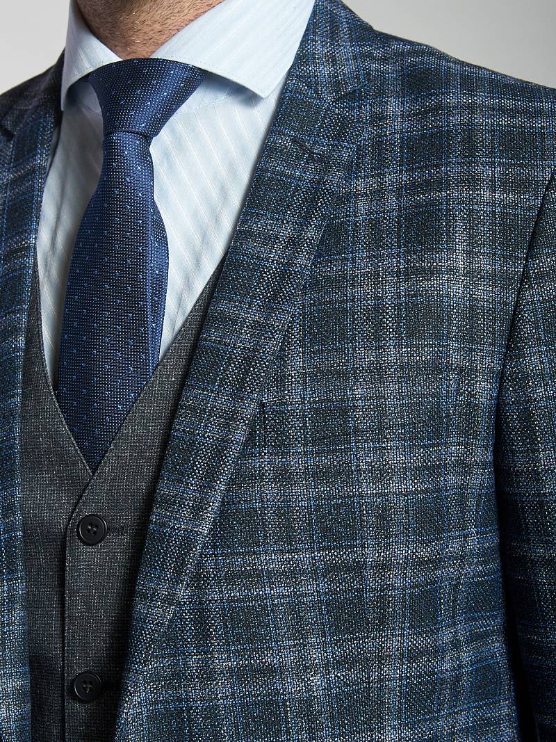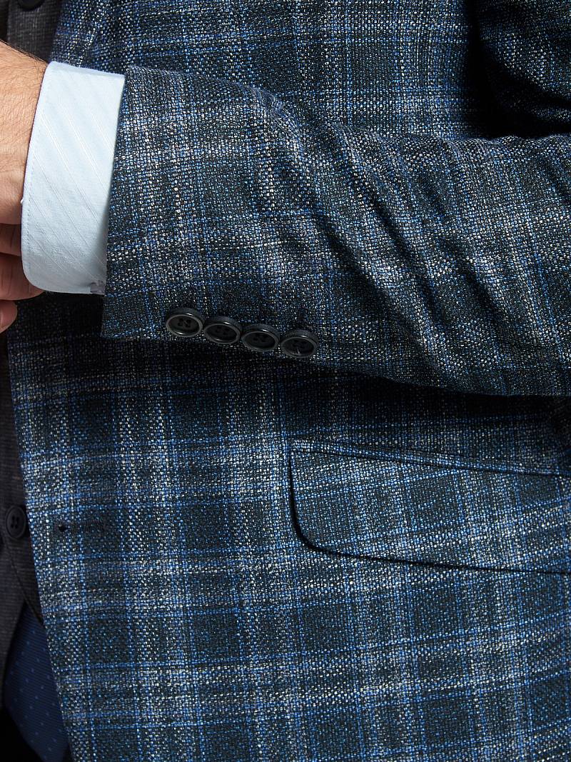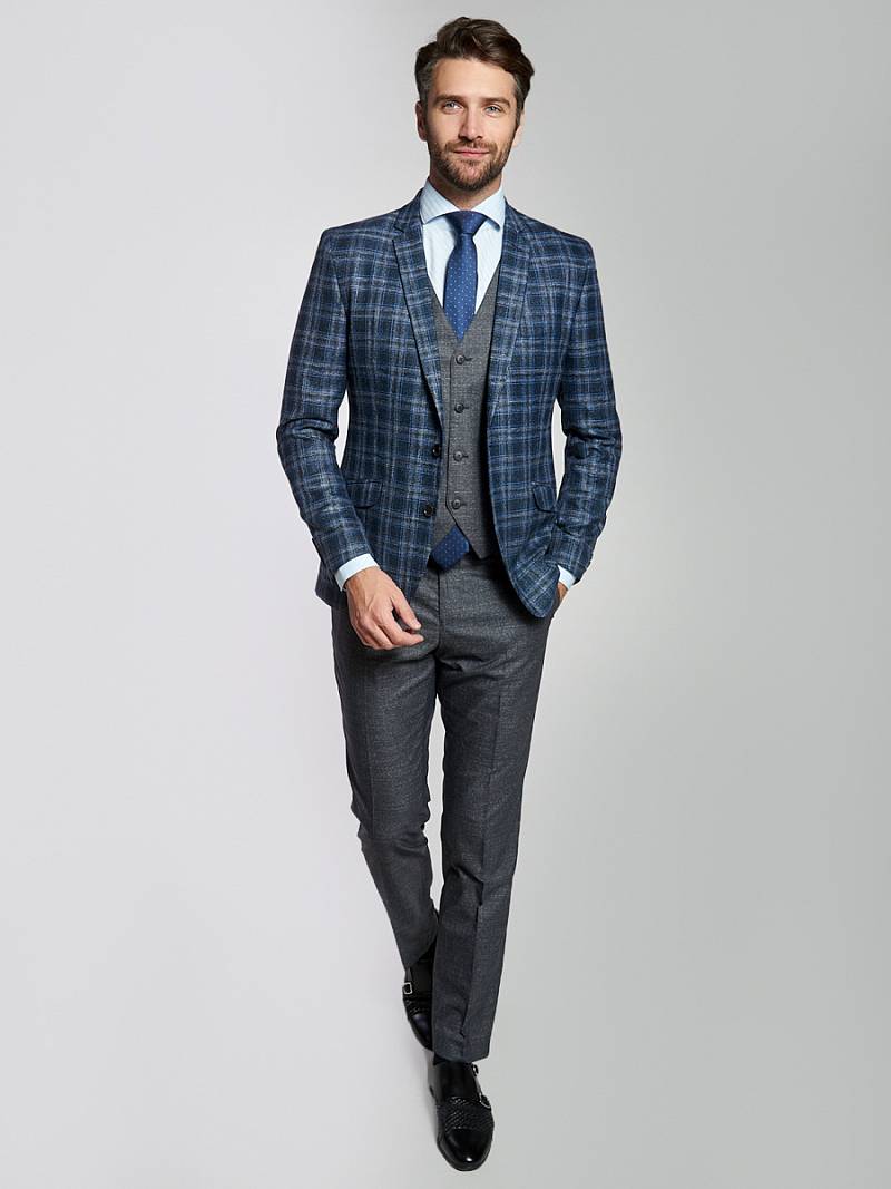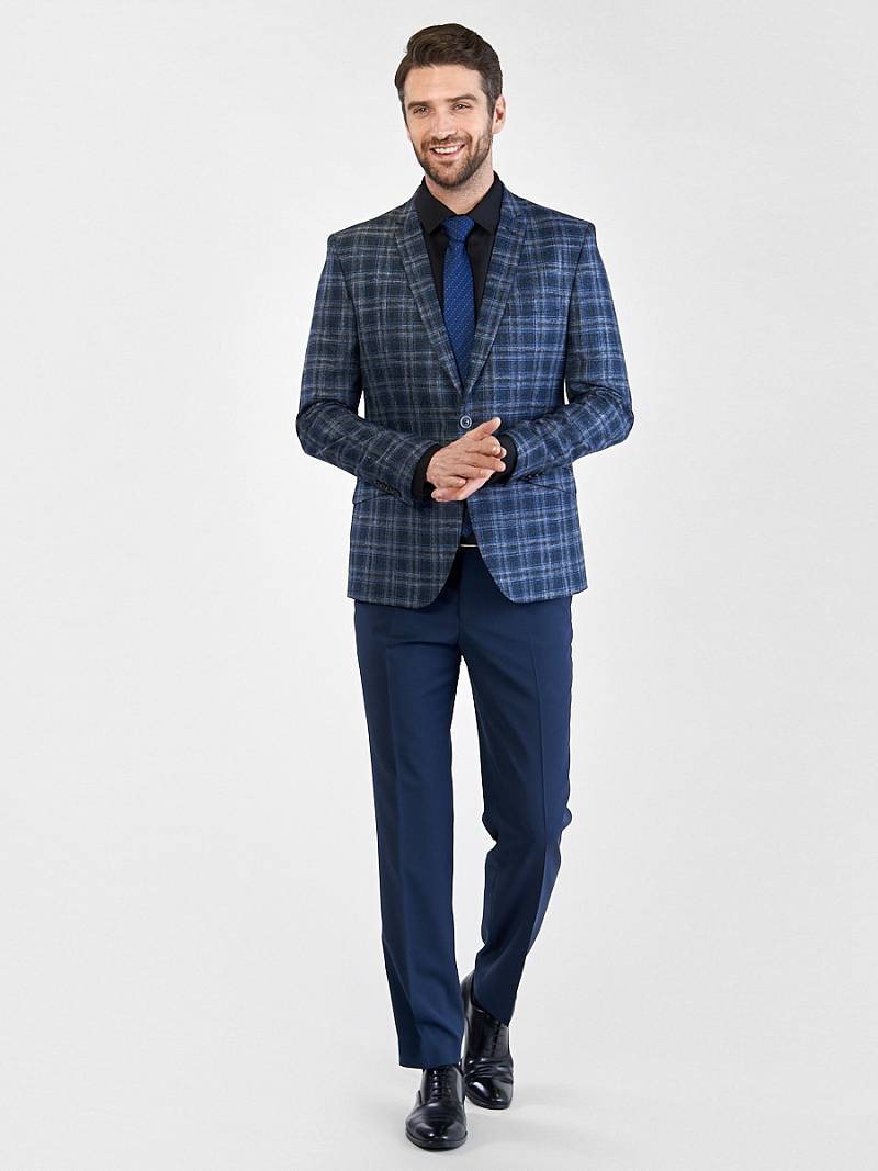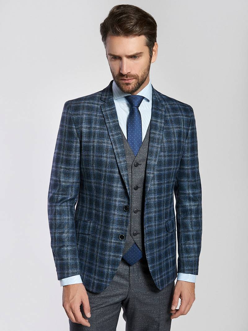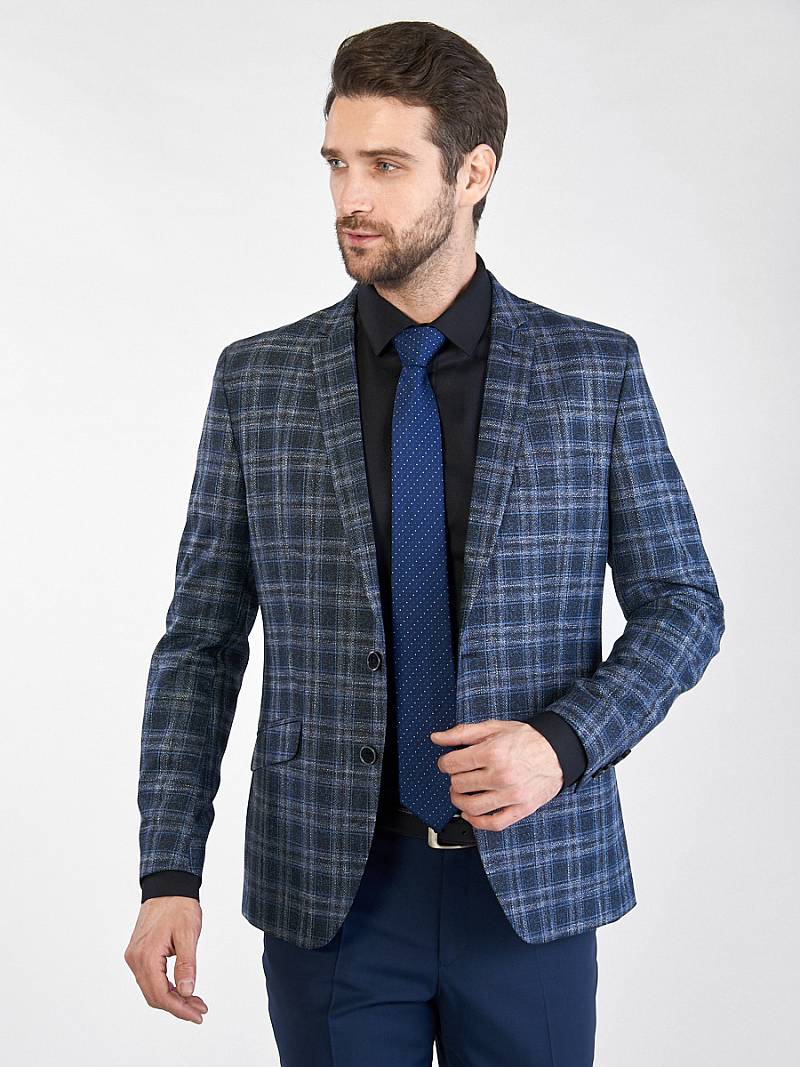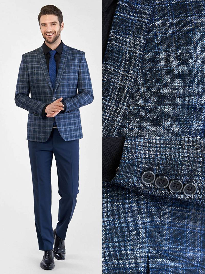 Slim fit, Классический мужской пиджак на две пуговицы, с боковыми и нагрудным карманами, по спинке две шлицы.