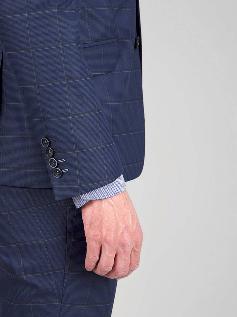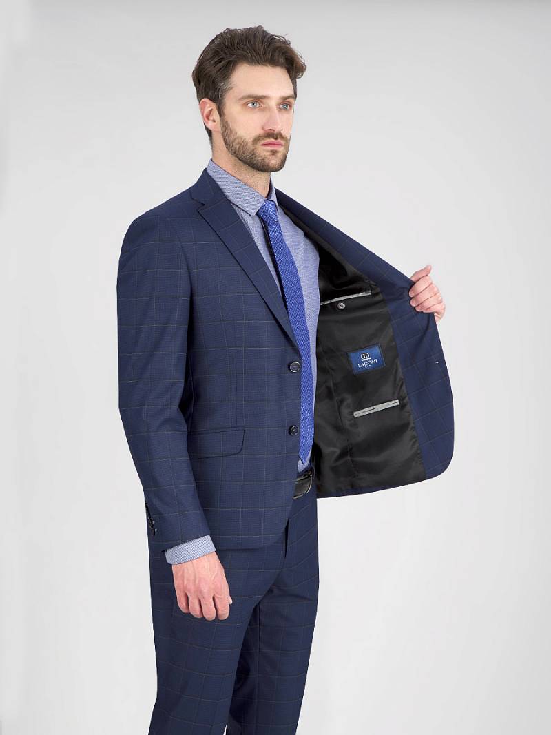 Slim fit , две пуговицы, две шлицы. Две фасонные петли на лацкане.