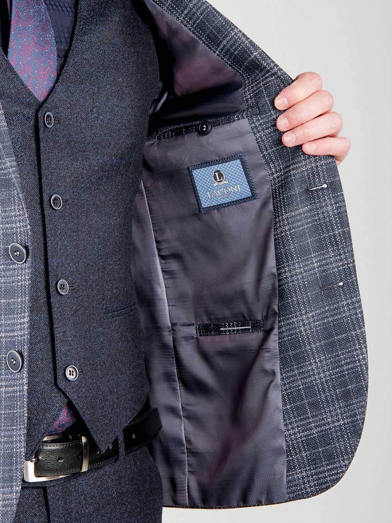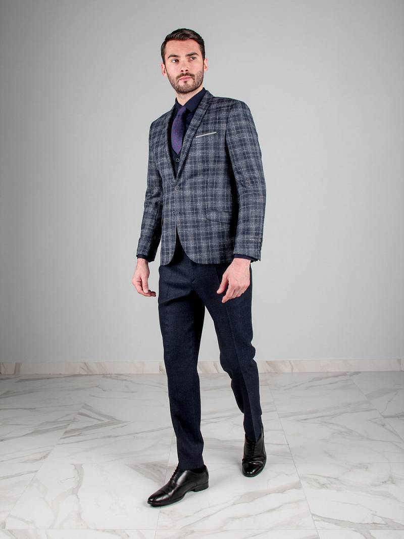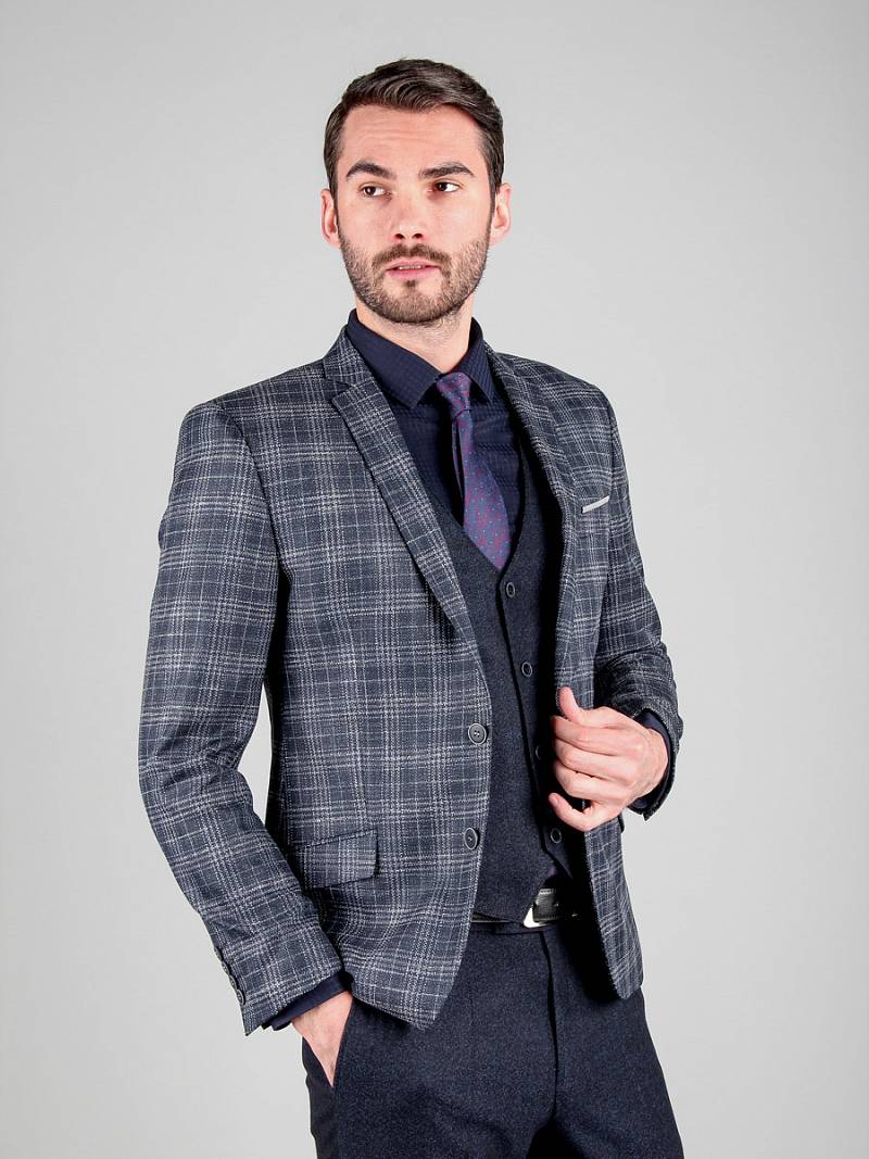 Slim fit, Классический мужской пиджак на две пуговицы, с боковыми и нагрудным карманами, по спинке две шлицы.