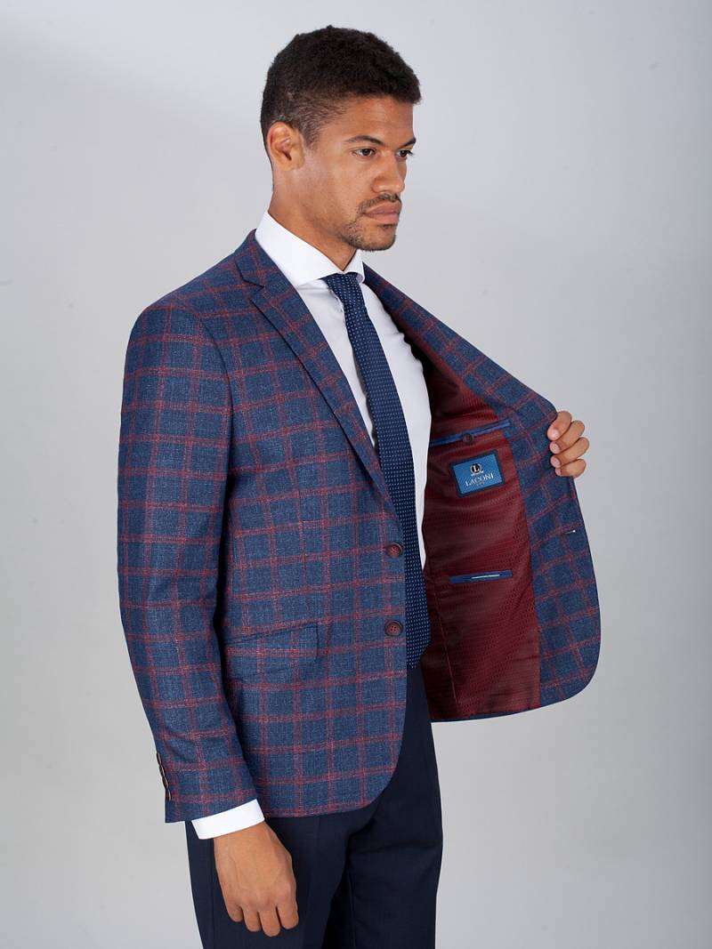 Classic fit, Классический мужской пиджак на две пуговицы, с боковыми и нагрудным карманами, по спинке одна шлица. Контрастные петли, декоративная пуговица на лацкане, в нагрудном кармане съемный декоративный платок.
