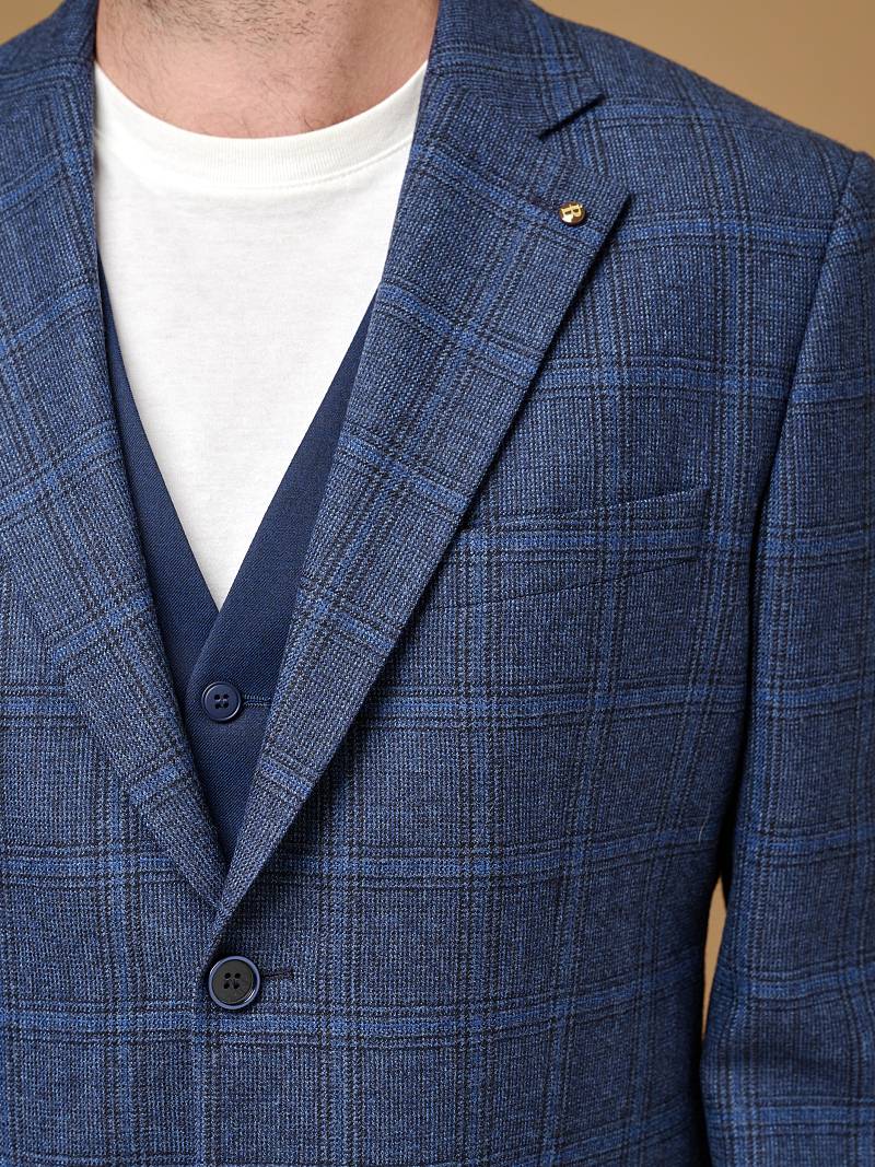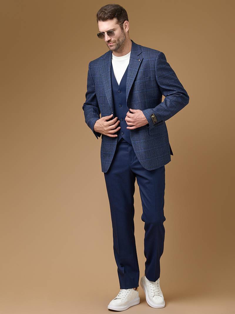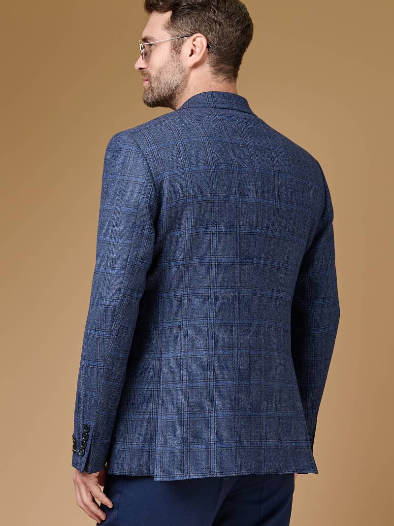 Classic fit (ПОЛУПРИЛЕГАЮЩИЙ СИЛУЭТ), Пиджак однобортный на две пуговицы, с двумя боковыми карманами и нагрудной листочкой. Рукава втачные, двухшовные со шлицей и четырьмя декоративными пуговицами. По спинке расположены две шлицы. Пиджак на подкладке, с двумя внутренними карманами.