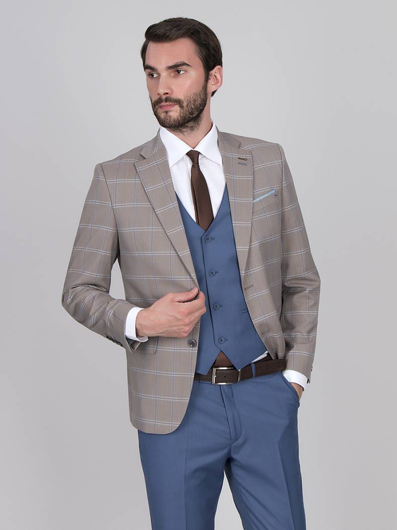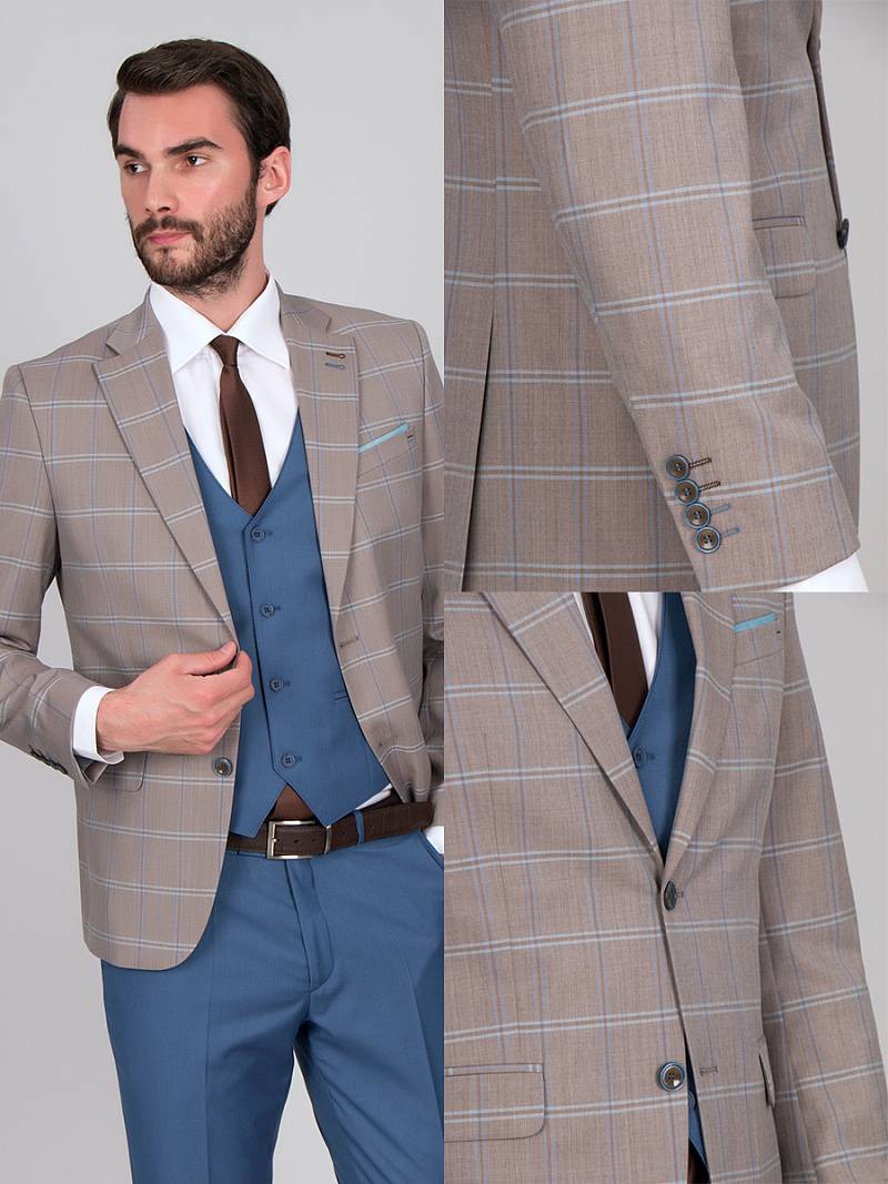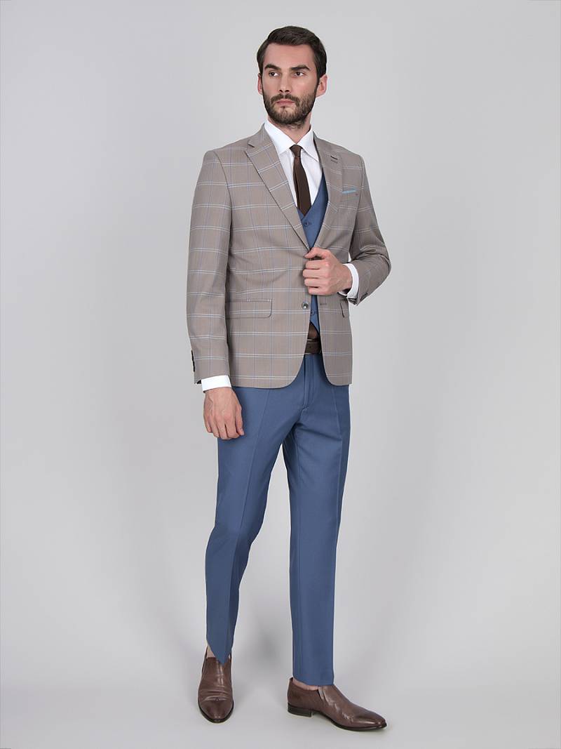 Slim fit, Классический мужской пиджак на две пуговицы, с боковыми и нагрудным карманами, по спинке две шлицы.