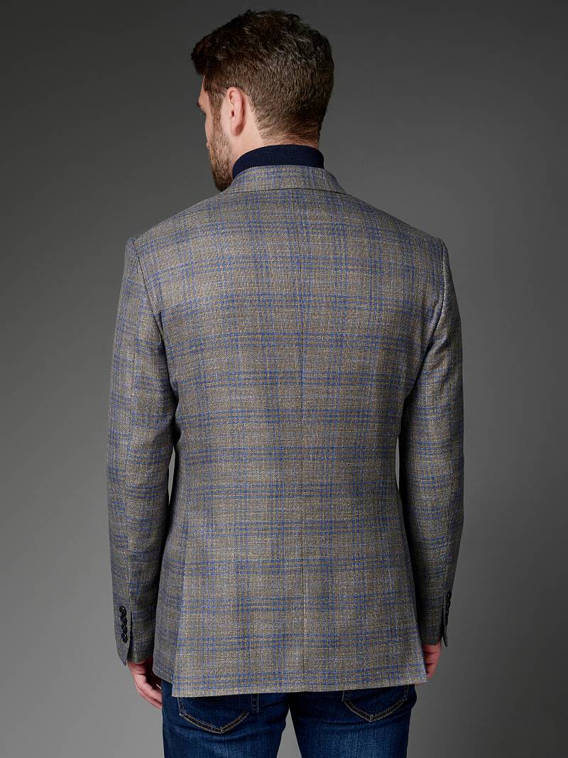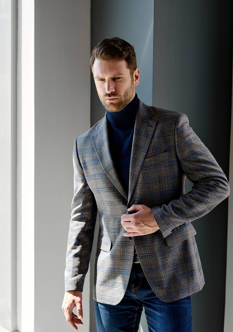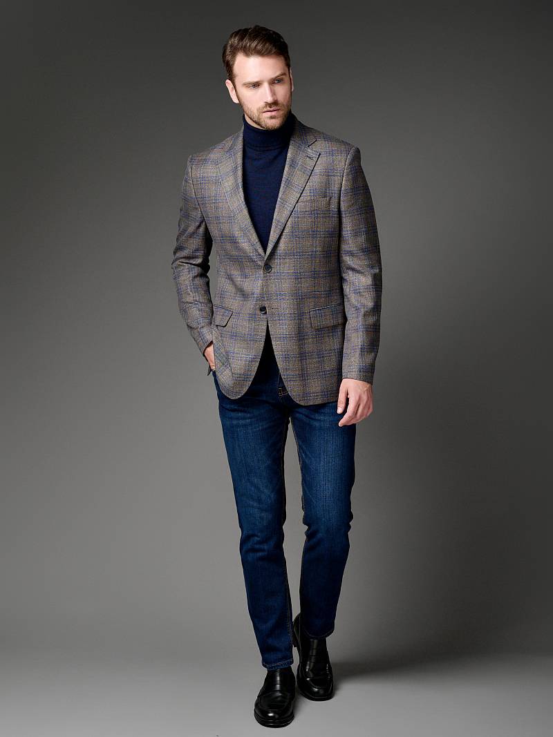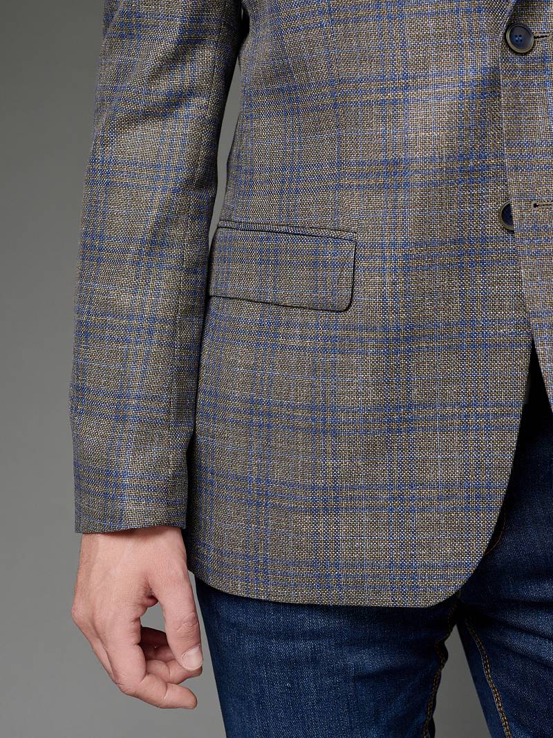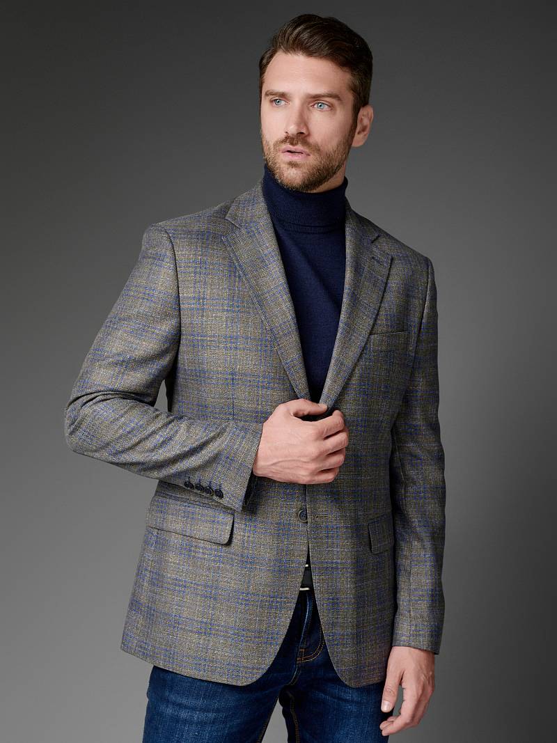 Classic fit (ПОЛУПРИЛЕГАЮЩИЙ СИЛУЭТ), Пиджак однобортный на две пуговицы, с двумя боковыми карманами и нагрудной листочкой. Рукава втачные, двухшовные со шлицей и четырьмя декоративными пуговицами. По спинке расположены две шлицы. Пиджак на подкладке, с двумя внутренними карманами.