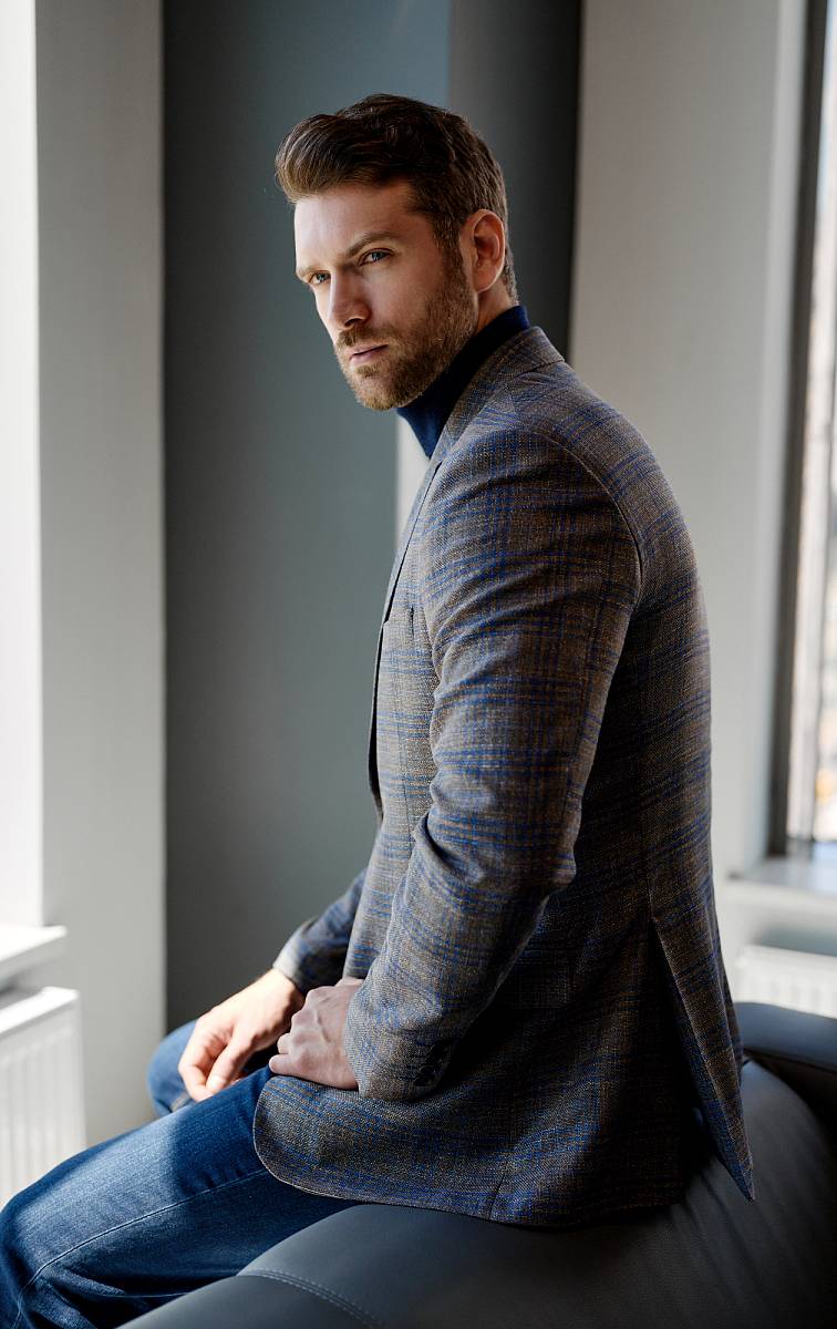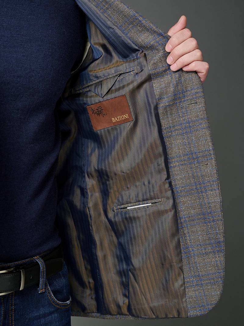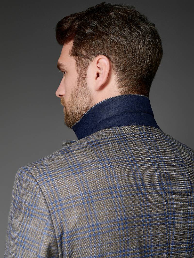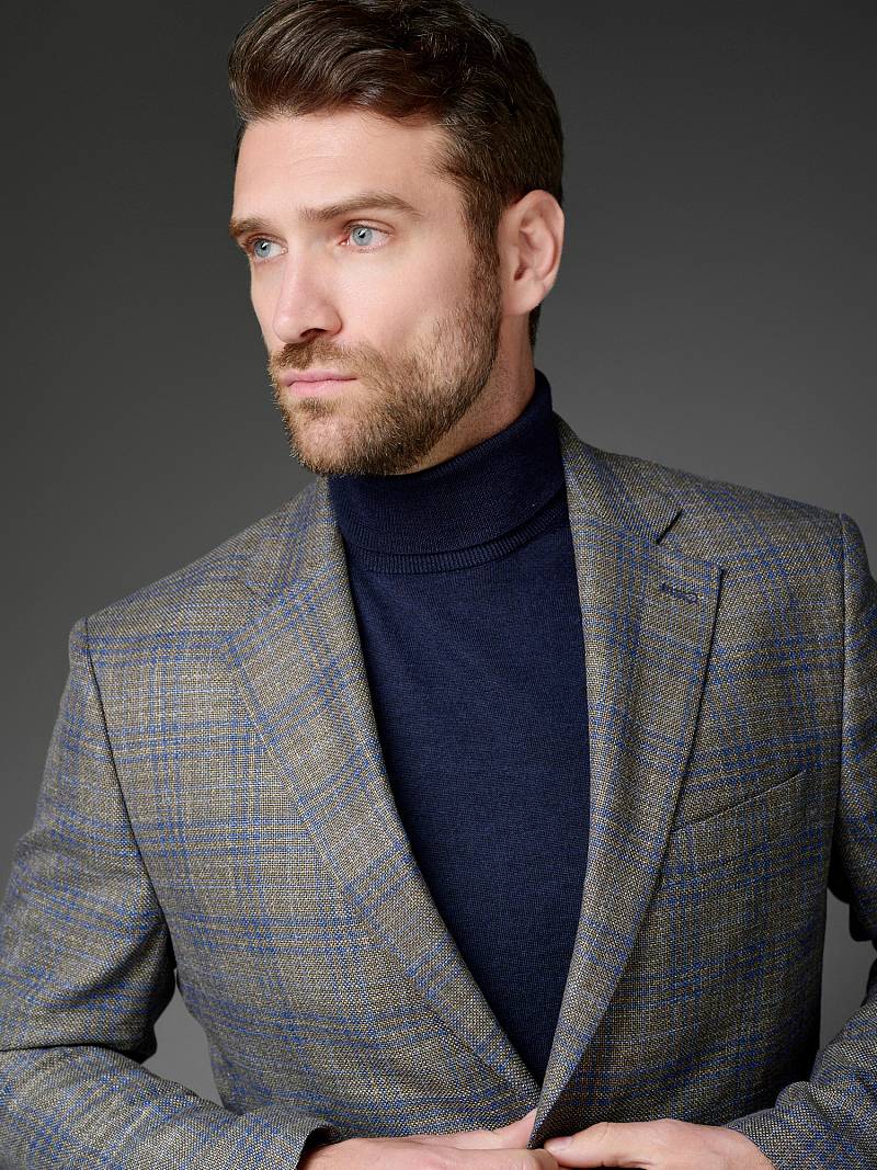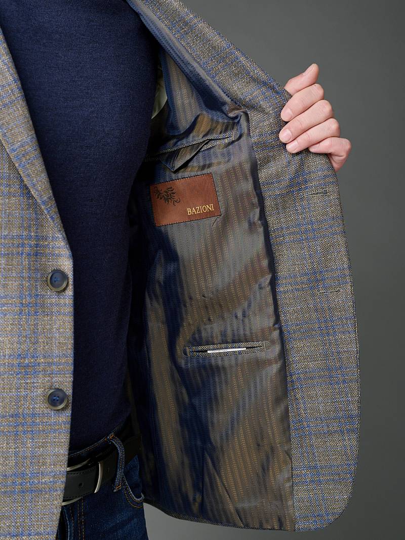 Classic fit (ПОЛУПРИЛЕГАЮЩИЙ СИЛУЭТ), Пиджак однобортный на две пуговицы, с двумя боковыми карманами и нагрудной листочкой. Рукава втачные, двухшовные со шлицей и четырьмя декоративными пуговицами. По спинке расположены две шлицы. Пиджак на подкладке, с двумя внутренними карманами.