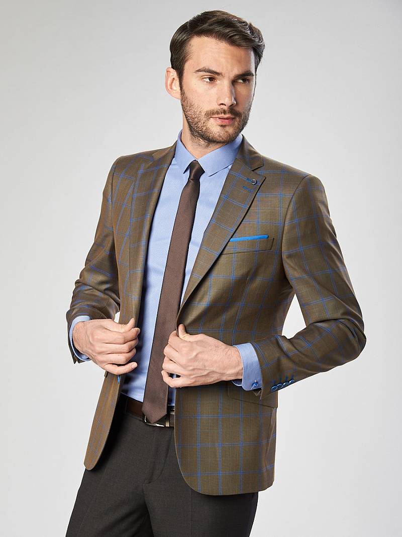 Classic fit, Классический мужской пиджак на две пуговицы, с боковыми и нагрудным карманами, по спинке две шлицы.