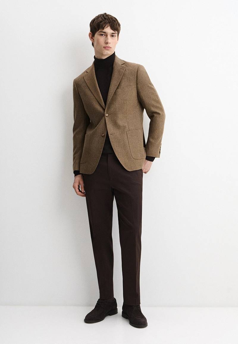 Представляем элегантный, шерстяной пиджак от марки BAZIONI, сочетающий классическую строгость и современную утонченность бренда. Премиальная шерстяная ткань подчеркивает респектабельность, а безупречная посадка обеспечивает комфорт. Такой пиджак подчеркнет престиж и тонкий вкус владельца. Выполненный из качественной ткани с безукоризненным кроем, этот модель гарантирует комфорт в течение всего дня. Он станет универсальной основой гардероба современного мужчины, идеально подходя как для важных деловых встреч и офиса, так и для создания, утонченного smart casual образа. Накладные карманы добавляют современную ноту практичности и завершают лаконичный образ. Удобство в движении обеспечивают расположенные по спинке две шлицы, сохраняющие идеальную посадку при любой активности. Обработан пиджак шелковой подкладкой с двумя внутренними карманами и выполнена отделка из контрастной вспушки и канта. Дизайнеры марки BAZIONI тщательно подходят к выбору материалов. Пуговицы подбираются и красятся индивидуально под каждую ткань, а прикладные материалы используют только от передовых производителей. Пиджак мужской, классический, под джины, повседневный, молодежный, casual, для работы в офисе, модный, для мужа, сына, брата, на праздник.