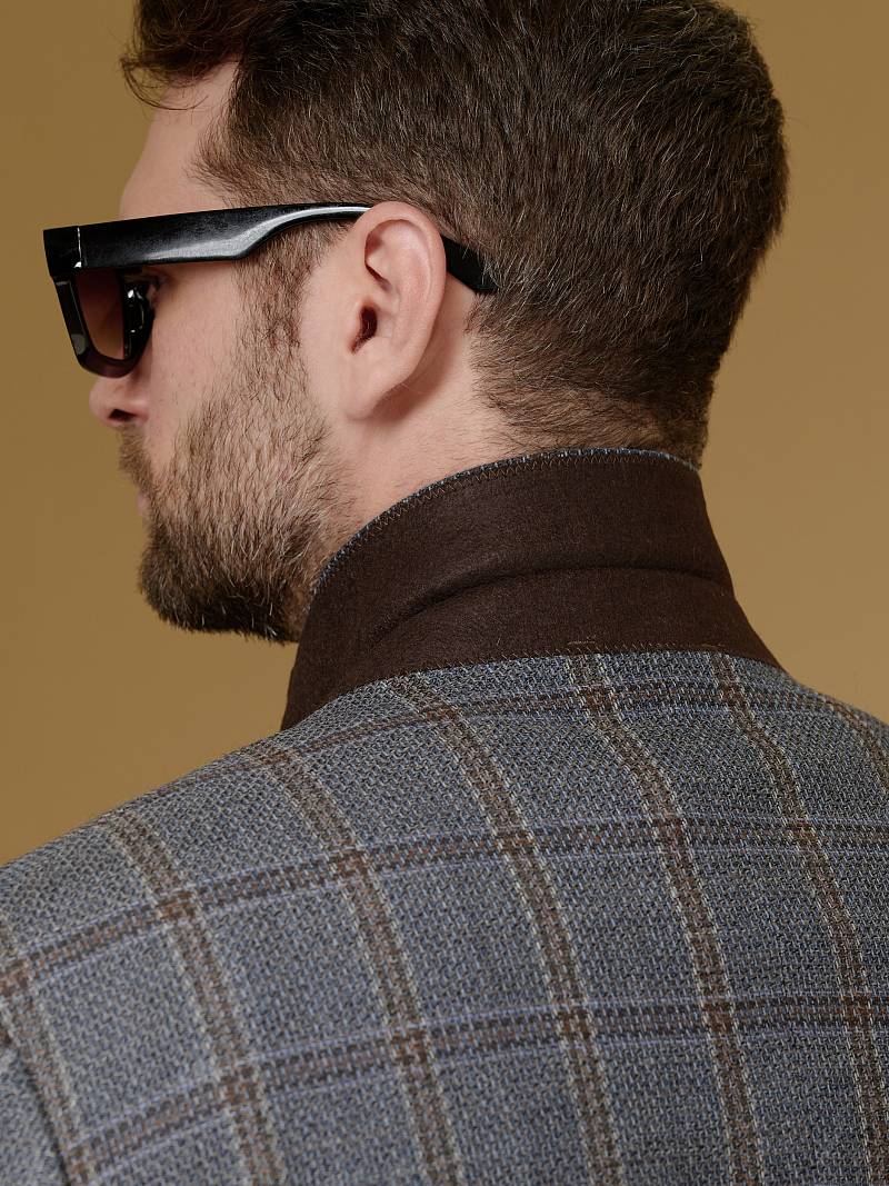 Classic fit (ПОЛУПРИЛЕГАЮЩИЙ СИЛУЭТ). Пиджак марки BAZIONI– это идеальное сочетание стиля и комфорта для мужчин, которые ценят качественный пошив и изысканный дизайн. Классическая однобортная модель на две пуговицы из шерстяной ткани оригинальной расцветки в клетку гармонично впишется в любой образ. Пиджак широкими лацканами и мягкой линией плеч отлично сядет по фигуре, а расположенные по спинке две шлицы обеспечат дополнительный комфорт и свободу движения. Для придания образу торжественности подкладку нагрудного кармана можно использовать как платок-паше. Лацканы украсили небольшим значком в виде эмблемы бренда. Обработан пиджак шелковой подкладкой с двумя внутренними карманами. Дизайнеры марки BAZIONI тщательно подходят к выбору материалов. Пуговицы подбираются и красятся индивидуально под каждую ткань, а прикладные материалы используют только от передовых производителей. Пиджак мужской, классический, под джины, повседневный, молодежный, casual, для работы в офисе, модный, для мужа, сына, брата, на праздник.