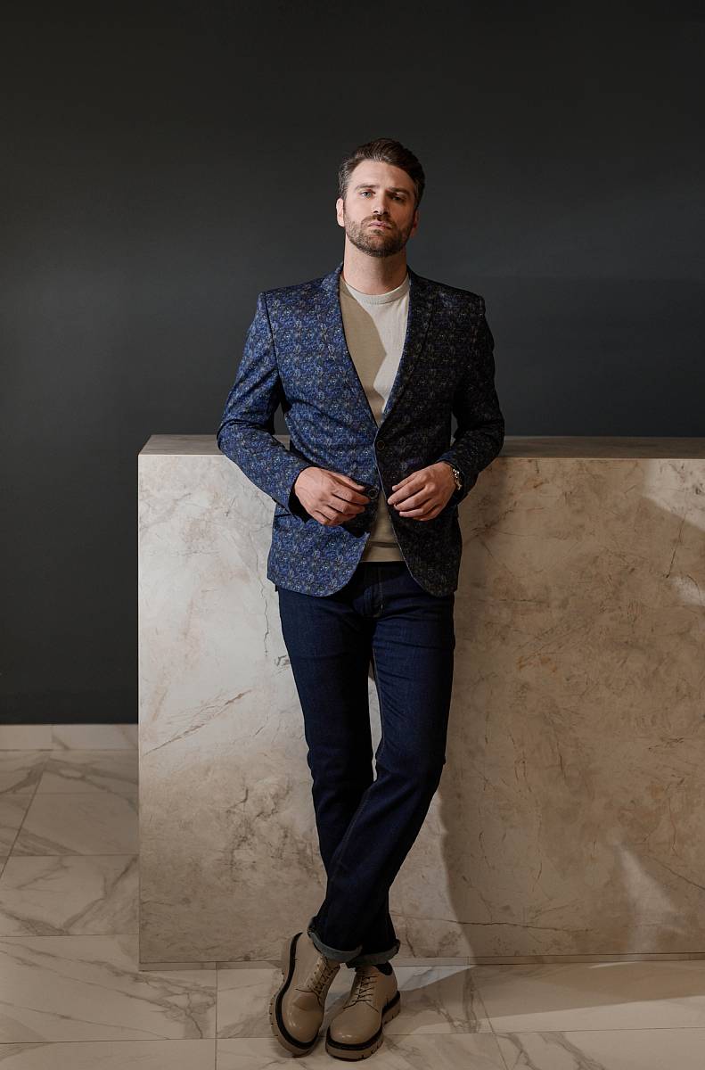 Slim fit, Классический мужской пиджак на две пуговицы, с боковыми и нагрудным карманами, по спинке одна шлица.