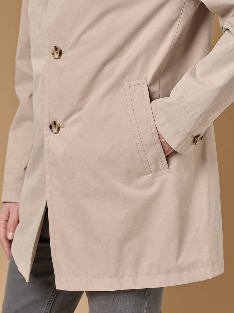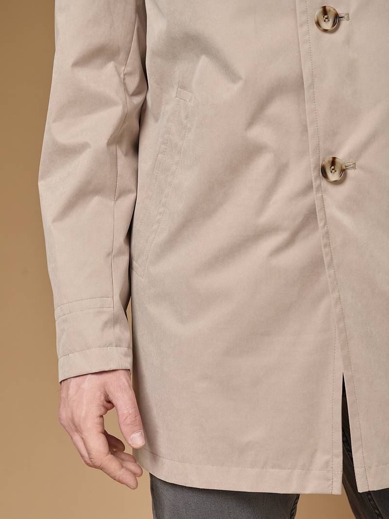 Плащ мужской весенний осенний прилегающего силуэта из курточной ткани с мембраной TPU эффективно защитит в непогоду. Современная одежда из материалов с ТПУ покрытием отличается отличной дышащей способностью, что в сочетании с водонепроницаемостью и защитой от ветра обеспечивает комфорт пользователю.