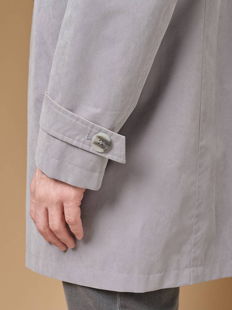 Застегивается на пуговицы, Имеются глубокие прорезные карманы на скрытых магнитах, внутренний карман на молнии, на воротнике и на рукавах - декоративные паты  застежкой на пуговицу. Нижний воротник, нижняя листочка, нижняя пата на рукавах - изготовлены из отделочной ткани. Демисезонный тренч украшают декоративными пуговицами сделанными специально вручную с матовой обработкой под каждый цвет ткани. Плащ на весну и осень, отлично подойдет на работу в офис или в институт.