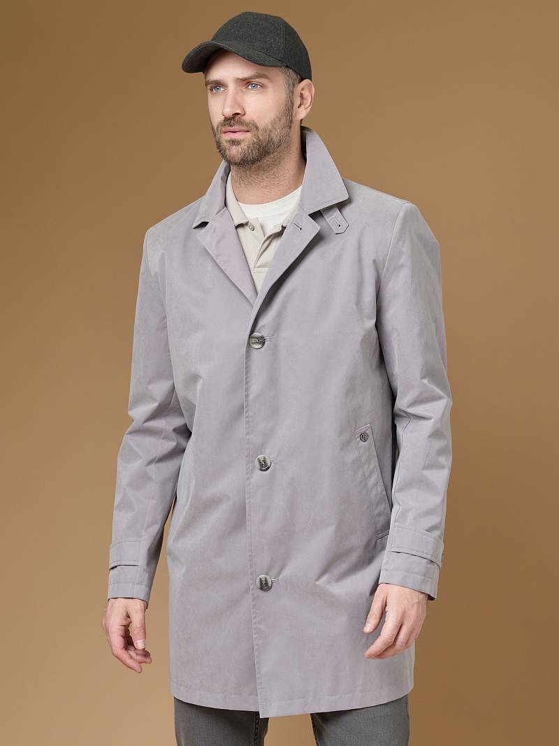Плащ мужской классический полуприлегающего силуэта, 4  пуговицы и 1 шлица. На стойке - оригинальная вышивка с логотипом компании, на кармане -листочке - нашивка -логотип. Оригинальный мужской плащ модного фасона производства известного бренда