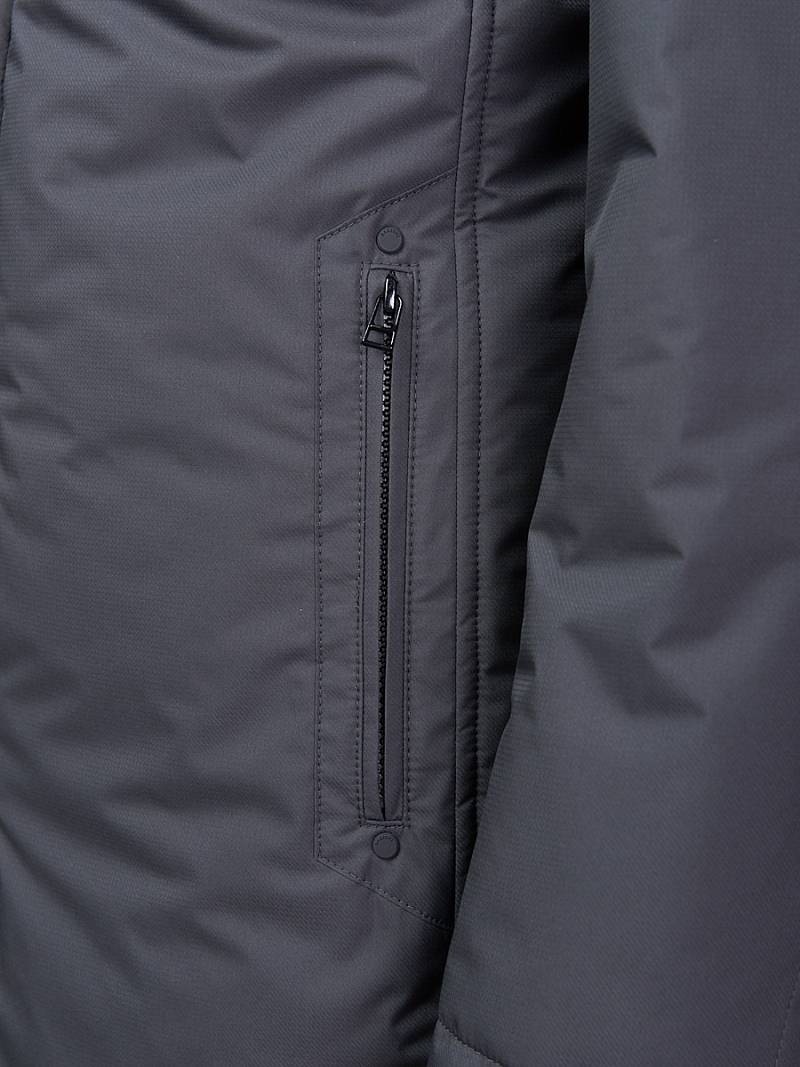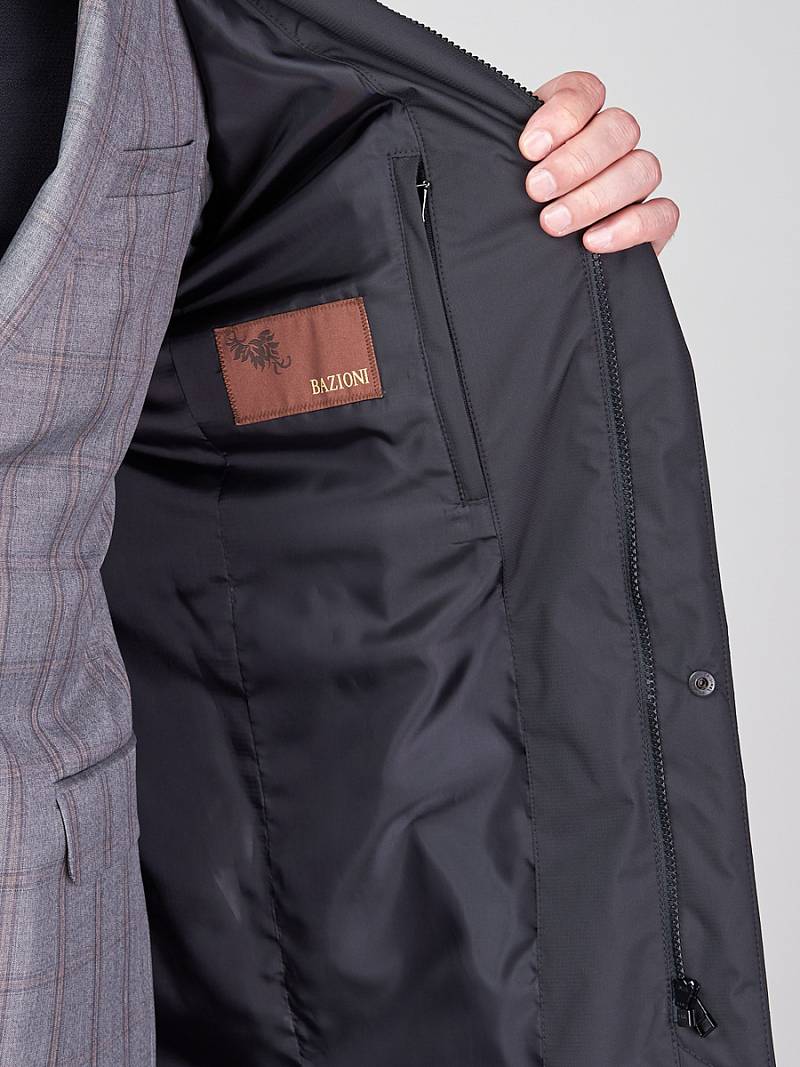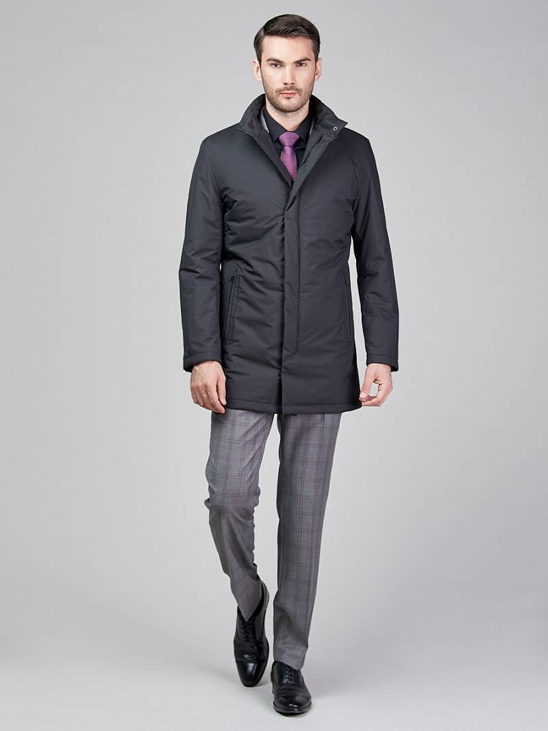 Плащ мужской классический полуприлегающего силуэта на легком утеплителе. Застёжка центральная на молнию и потайные кнопки. Воротник стойка. Полочка и спинка с отрезными боковыми частями. Боковые карманы прорезные "в рамку" на молнии. Спинка со средним швом и одной шлицей. Рукав втачной двухшовный. На подкладке два внутренних кармана на молнии. Длина изделия по спинке для роста 176 - 86см. Ткань верха: 100%полиэстер. Подкладка: 100%полиэстер. термоплюс 60 гр./60гр.