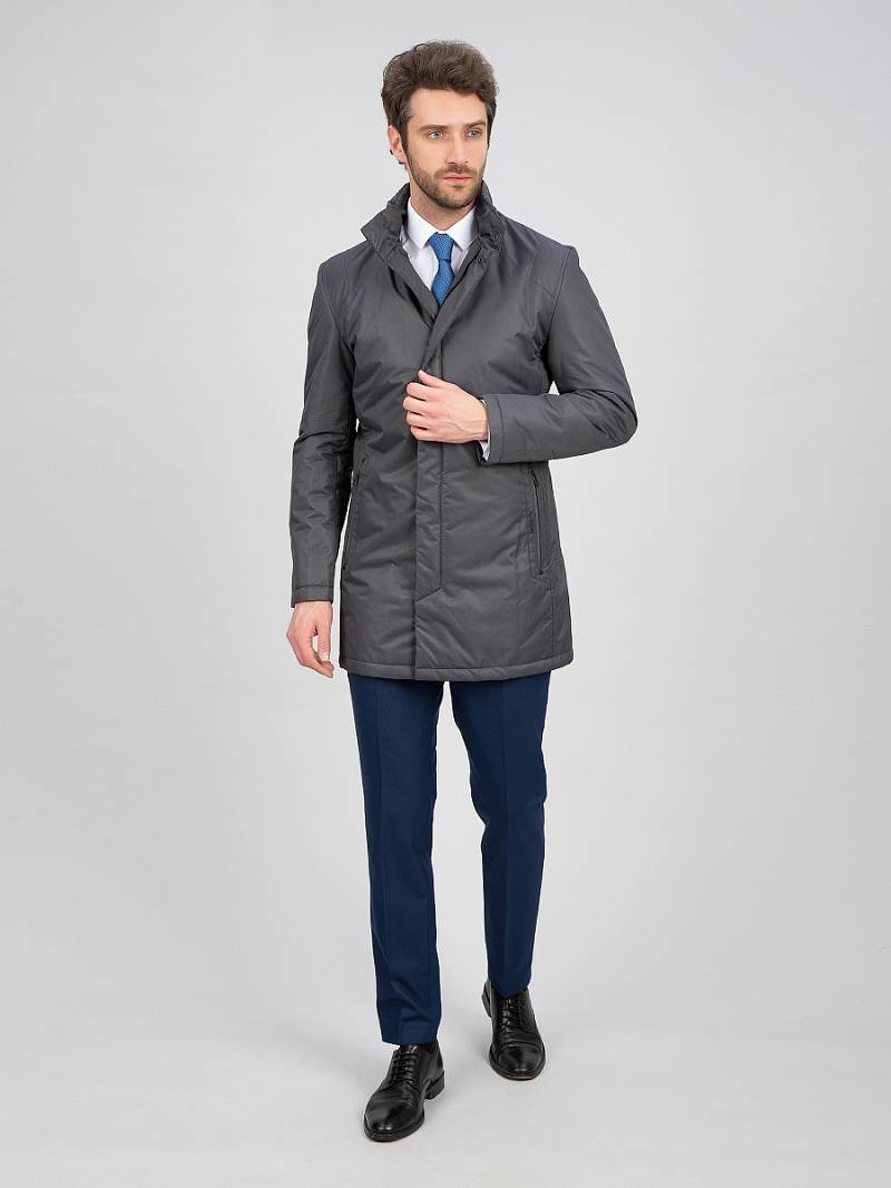 Плащ мужской классический полуприлегающего силуэта. Застёжка на молнию и потайные кнопки. 1 шлица