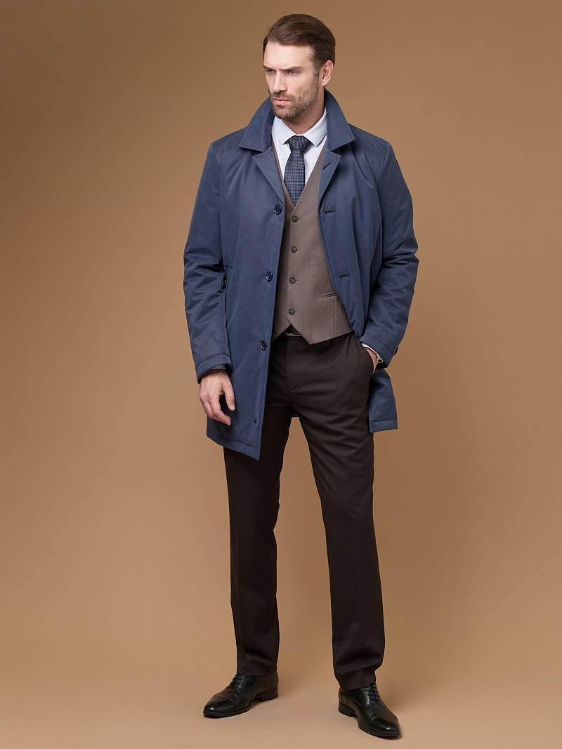 Мужской утепленный плащ из курточной ткани с мембраной, которая легко защитит от моросящего дождя или влажной погоды. В данном изделии легко планировать путешествие во влажные или дождливые области, так как ткань обладает высоким показателем водонепроницаемости. Также ткань обладает высокой устойчивостью к трению и прочностью, является дышащей, Это позволяет избежать преждевременного испарения влаги с поверхности кожи и улучшить комфорт при активном использовании. Все эти факторы влияют на комфорт и долговечность использования одежды. Дизайнеры Bazioni позаботились о вас, плащ утеплили утеплителем - термоплюс.